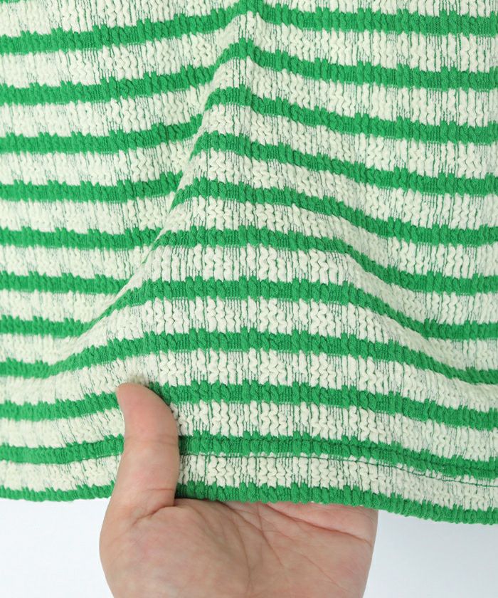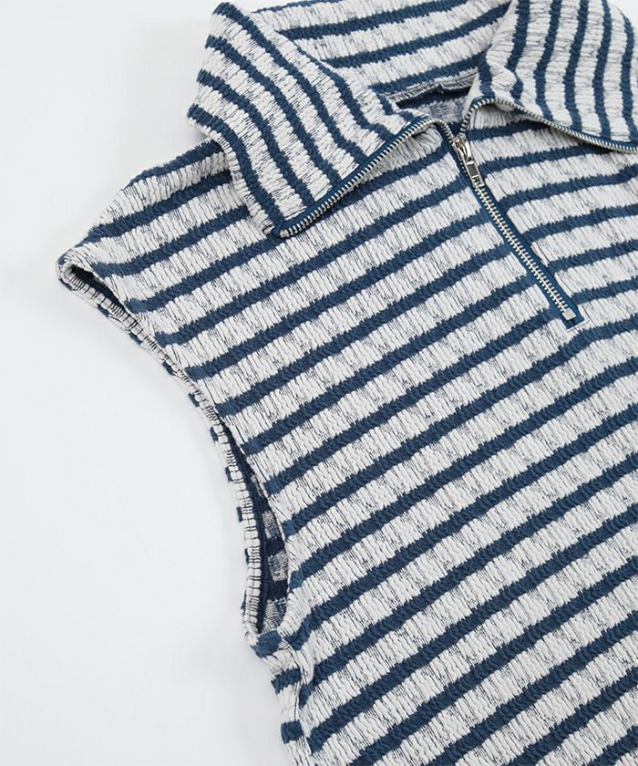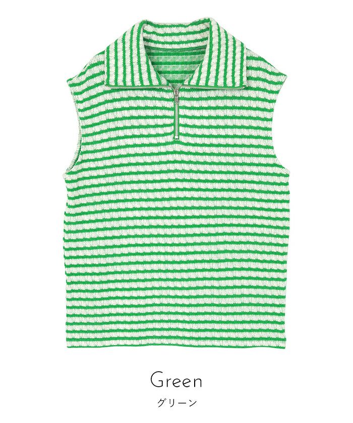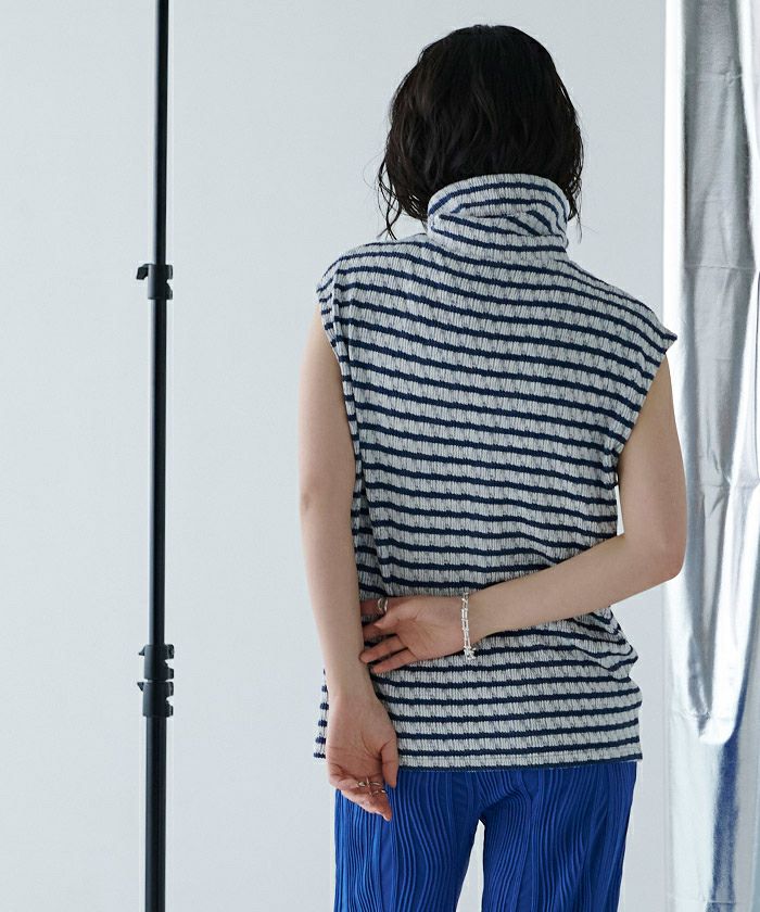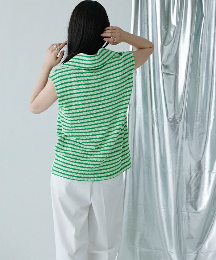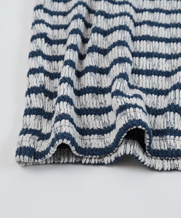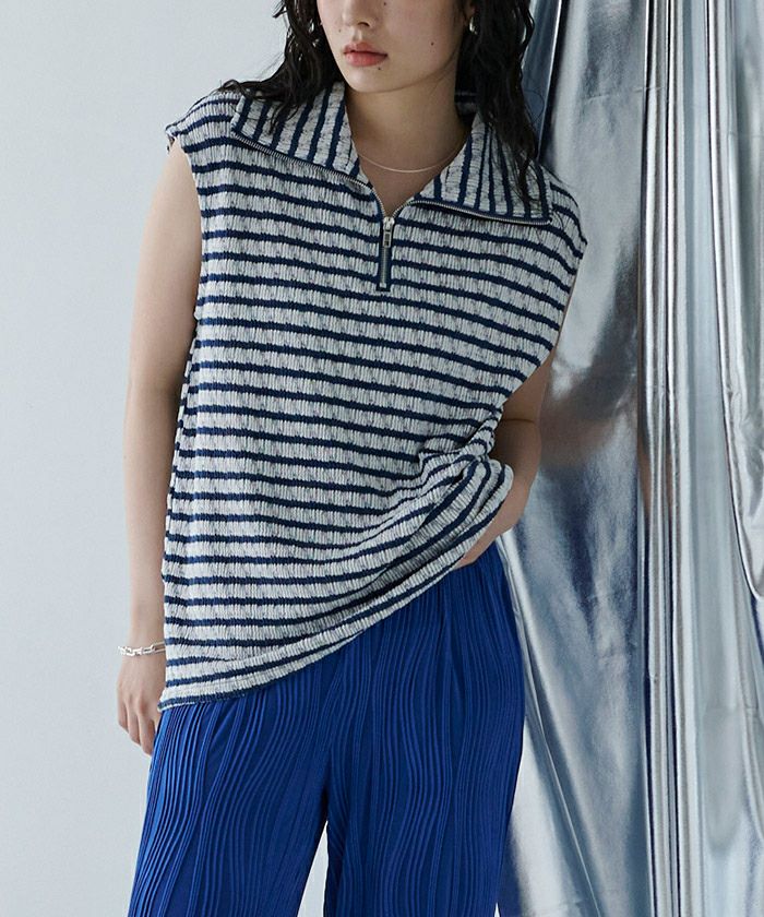 ・ボーダー柄の表面感のあるカットソー素材が可愛いベスト。