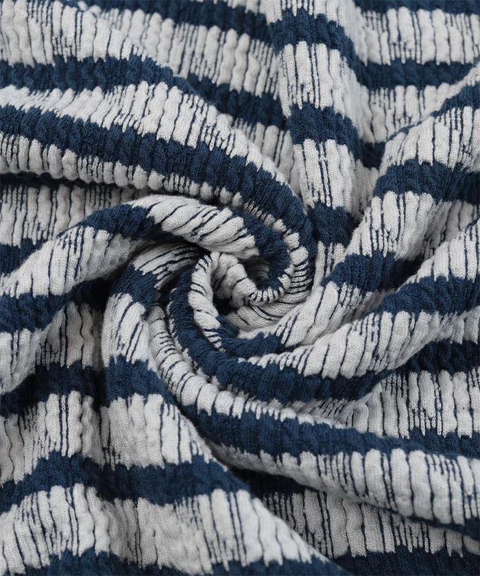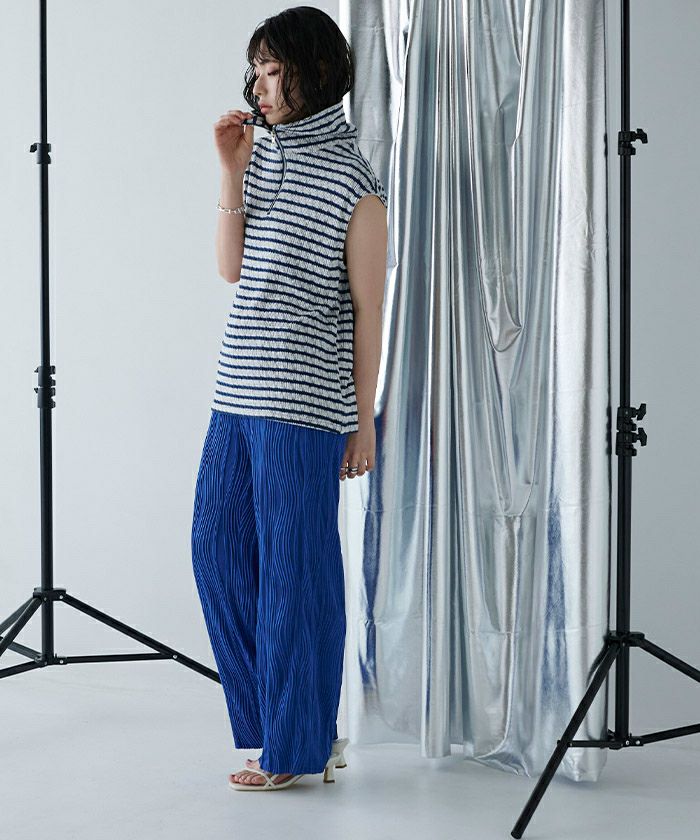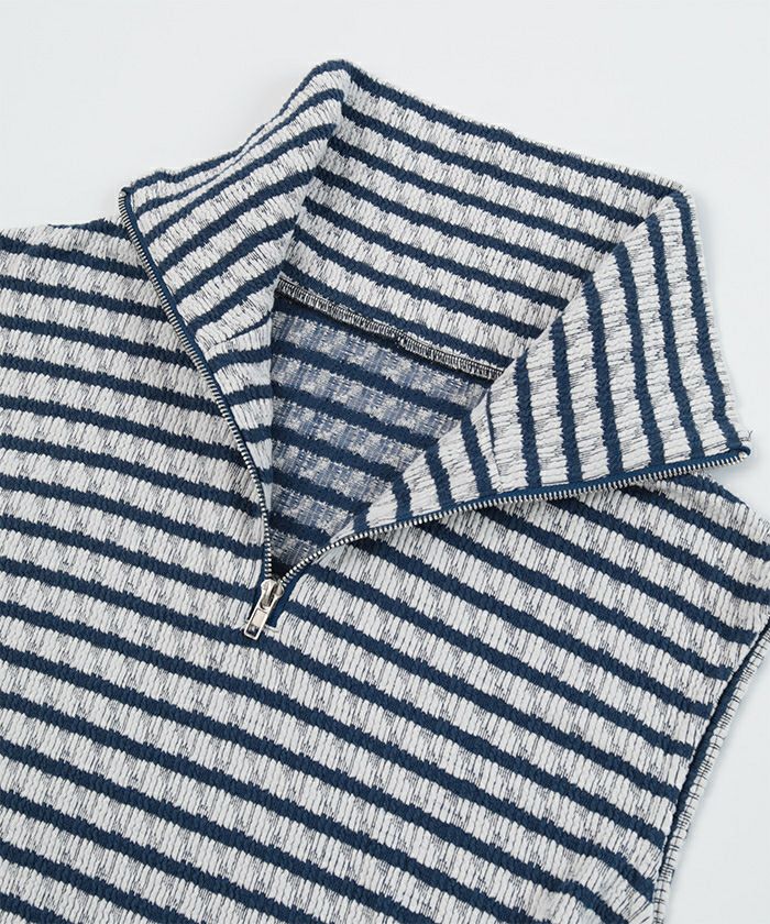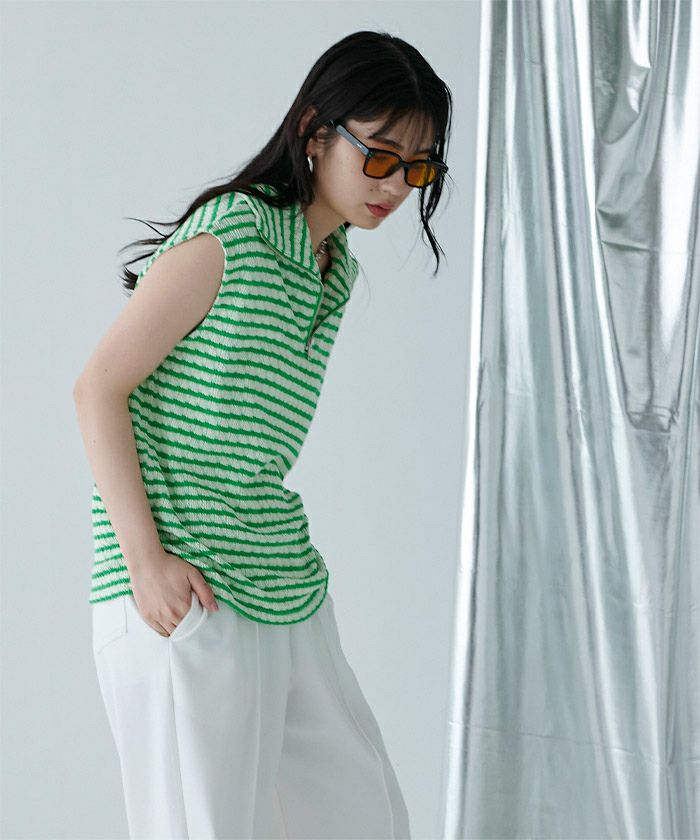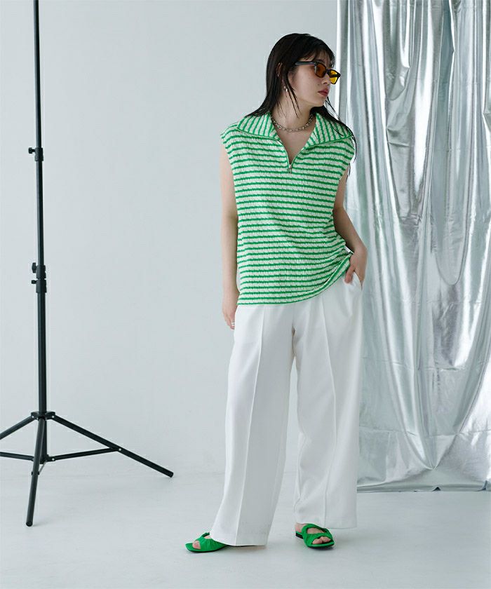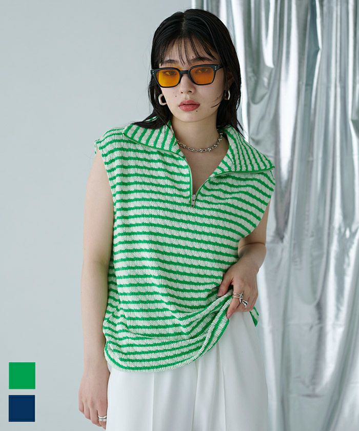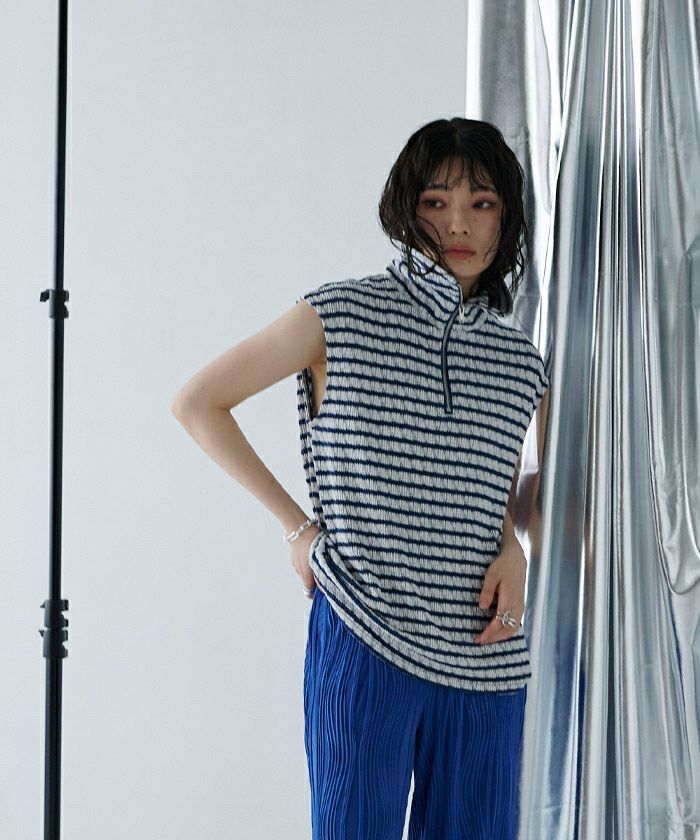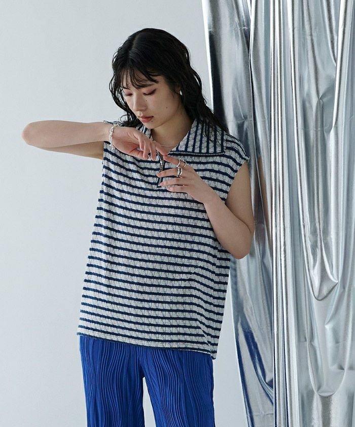 ・ボーダー柄の表面感のあるカットソー素材が可愛いベスト。