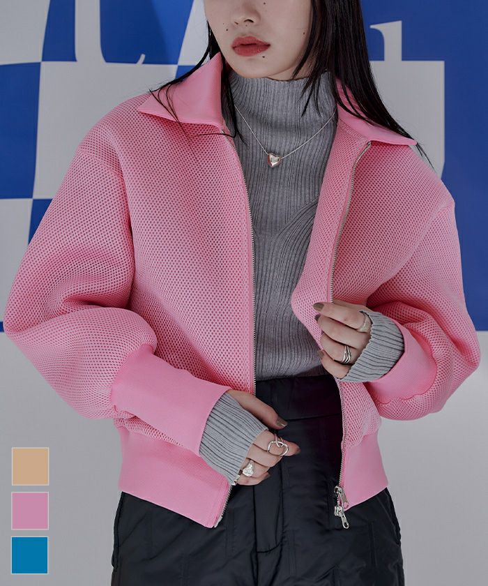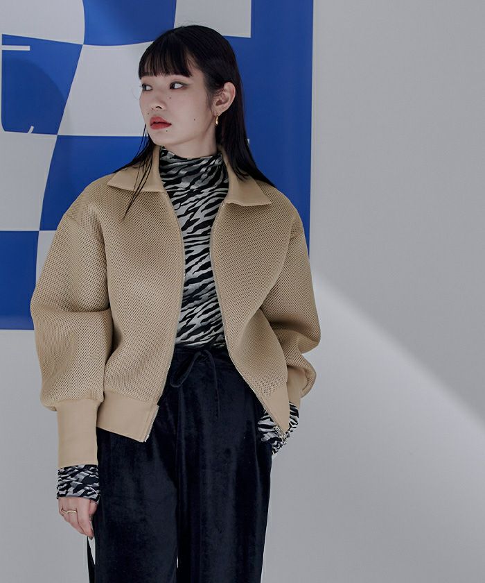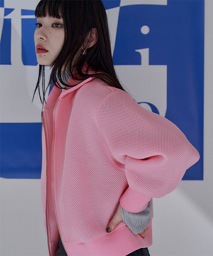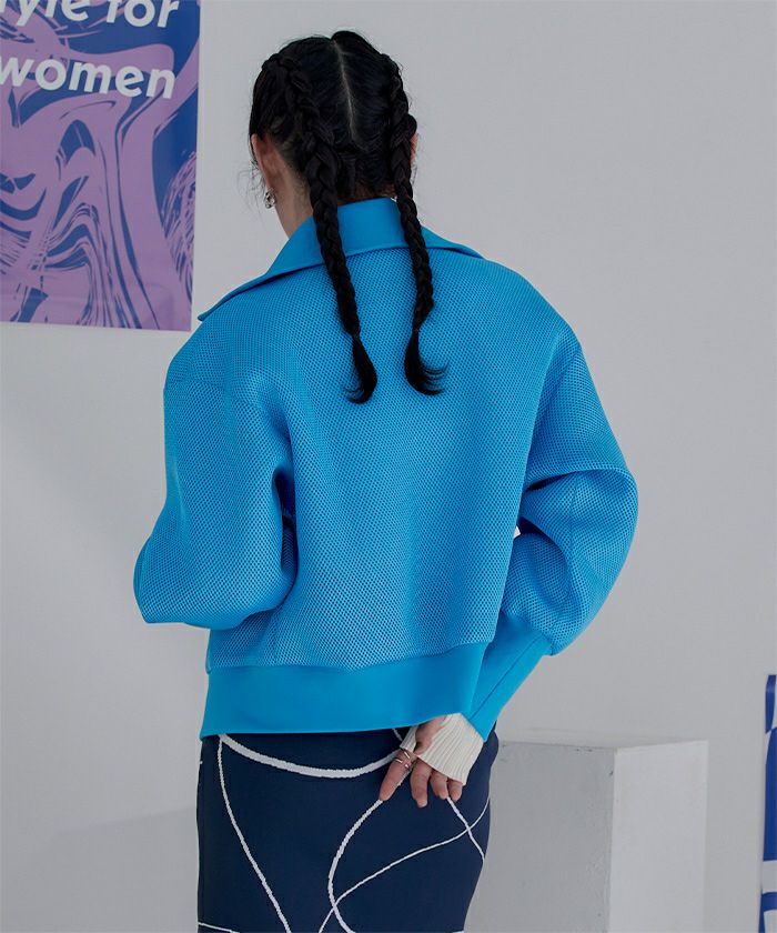 ・ハリ感のあるダブルラッセル素材を使用したブルゾン。