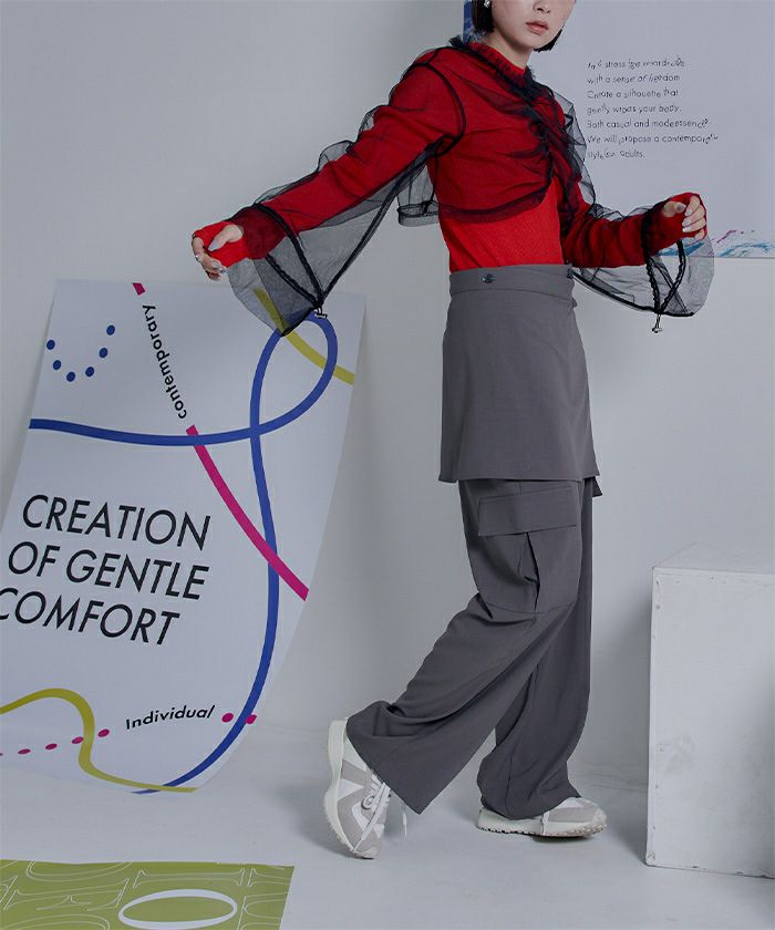 ・ロングスリーブをくしゃっとたるませて着用すればこなれ感もプラスできます。