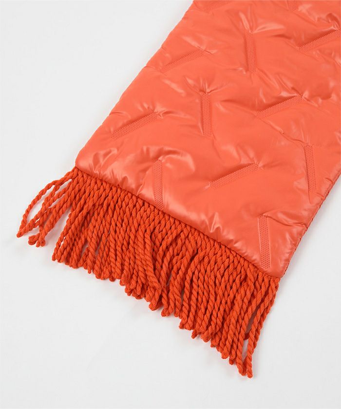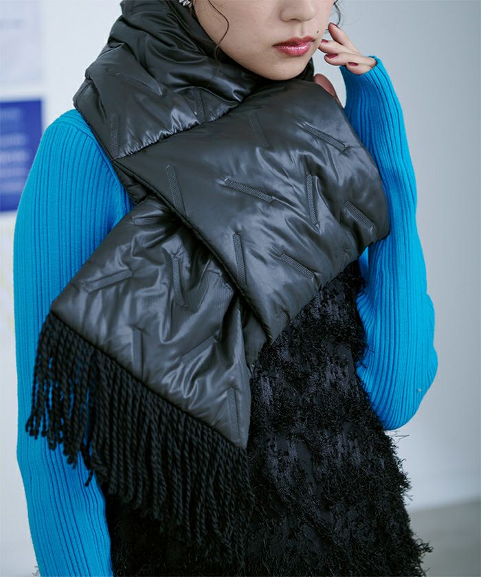 商品情報 ・存在感のあるキルティングデザインのフリンジマフラー。