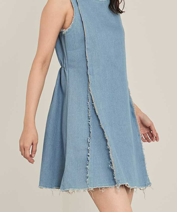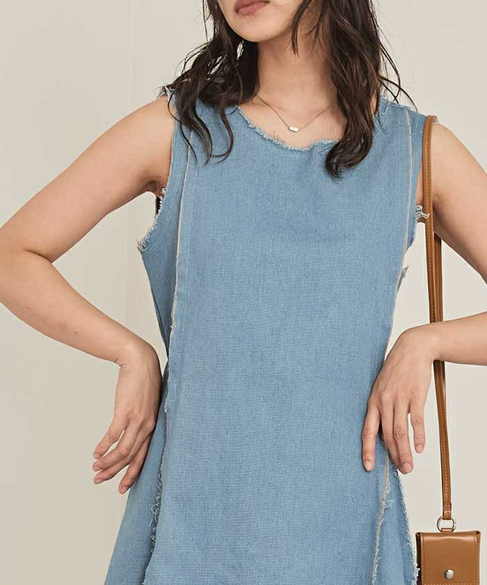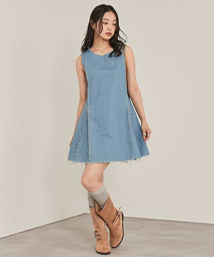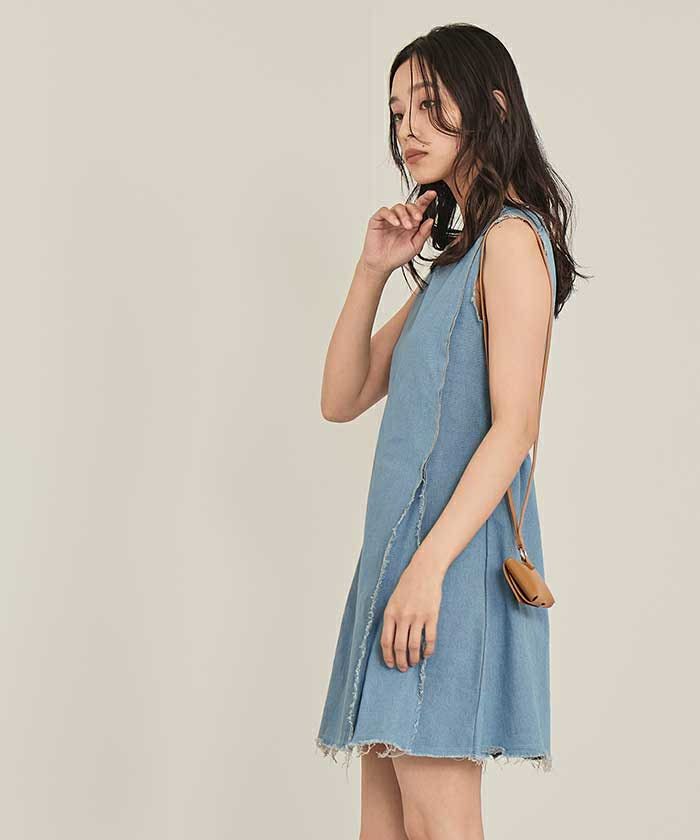 ・今季トレンドのデニムを使用した1枚でさらっと着用できるワンピース。