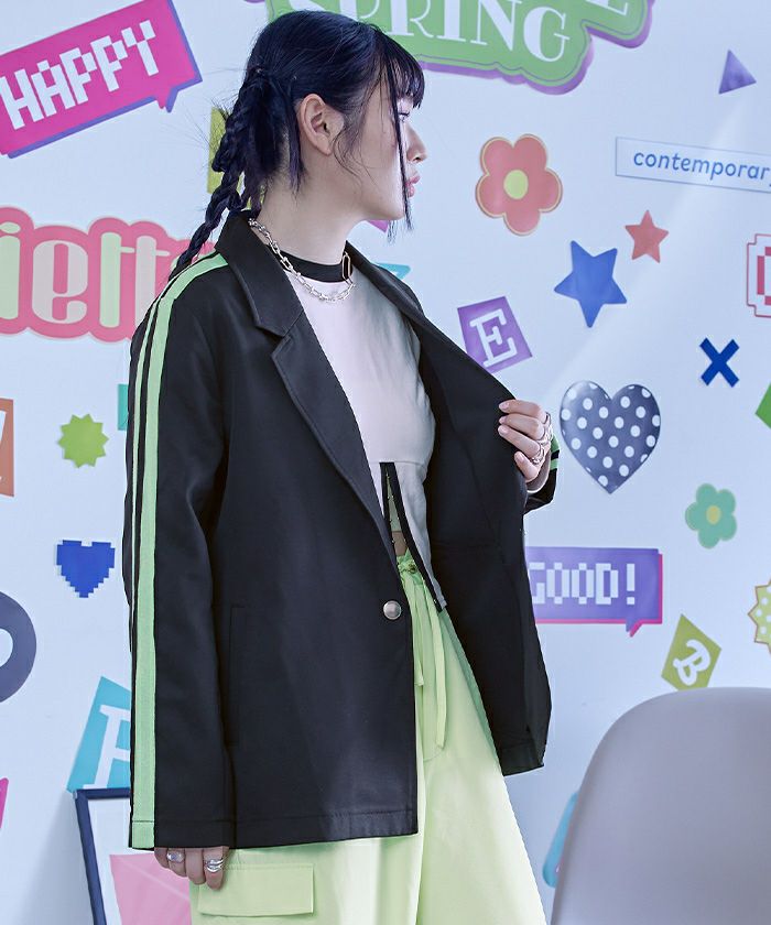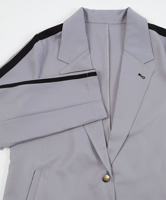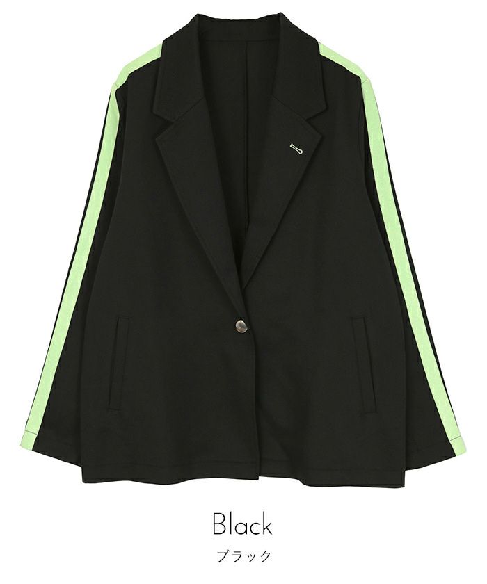 ・配色の袖ラインがアクセントになったテーラードジャケット。