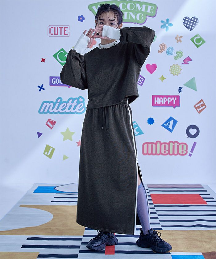・さりげないラメ感で普段使いしやすい裏毛スカート。