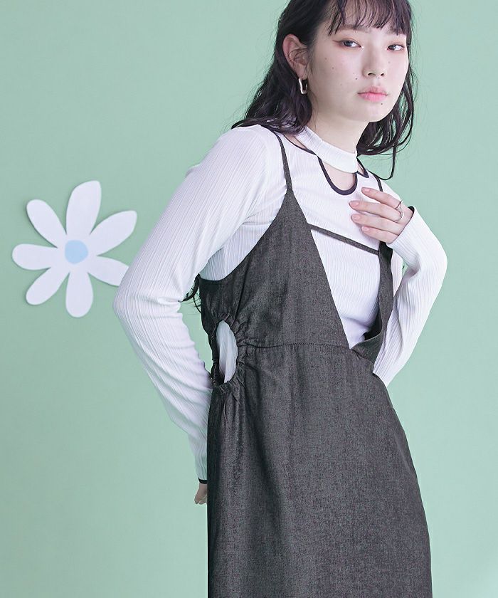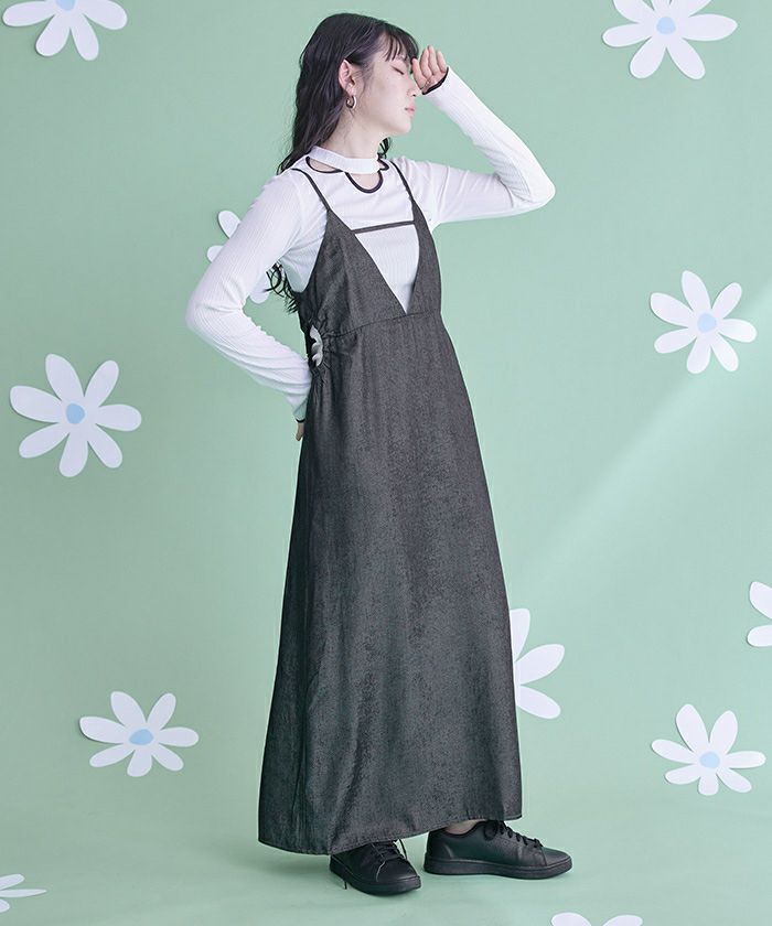 【期間限定★3500均一】 ダンガリーサイドカットキャミソールワンピース