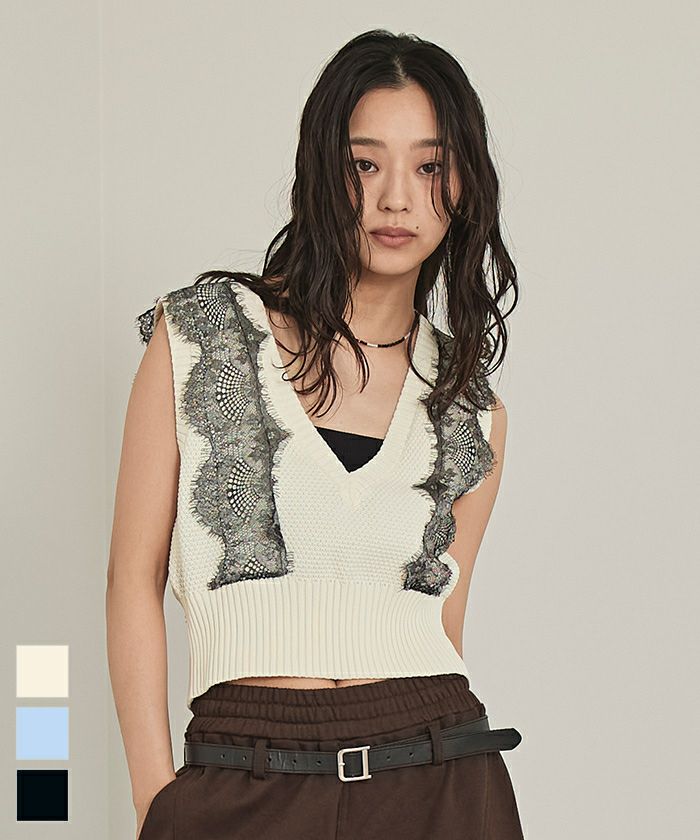 レース&ニットのデザインがカワイイです。 インナーの重ね着しだいでシーズンも長く着用出来そうです