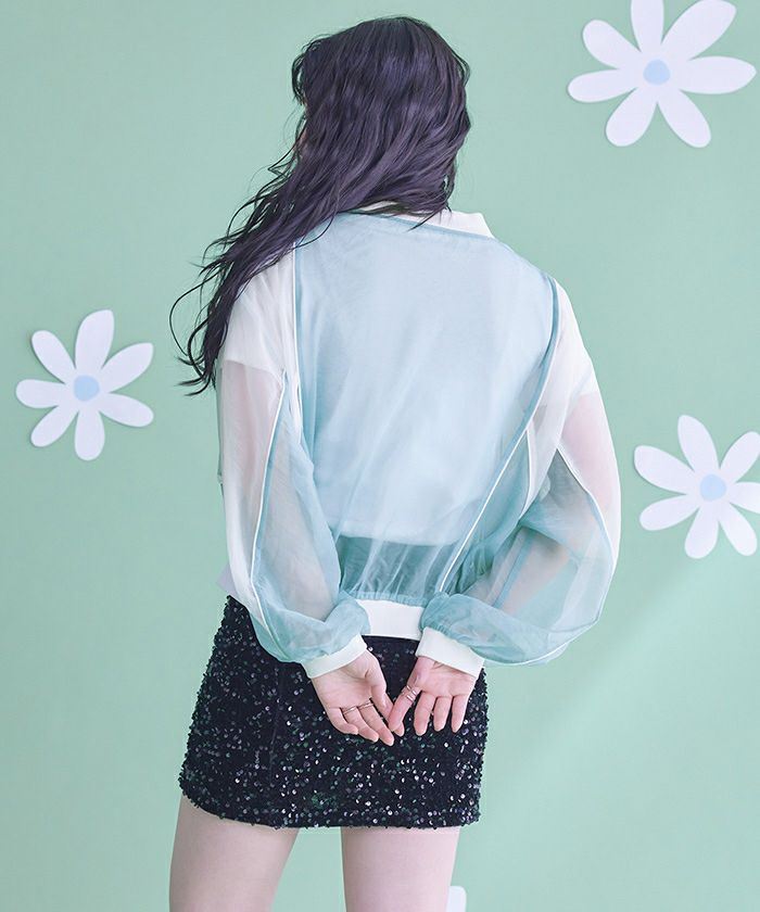 ・程良い透け感を演出するボリュームシアーブルゾン。