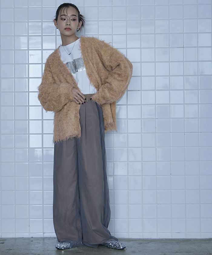 ・毛足が長めのシャギーと表面感のあるブークレが温かさたっぷりの主役級カーディガン。