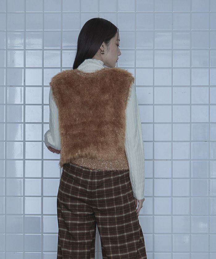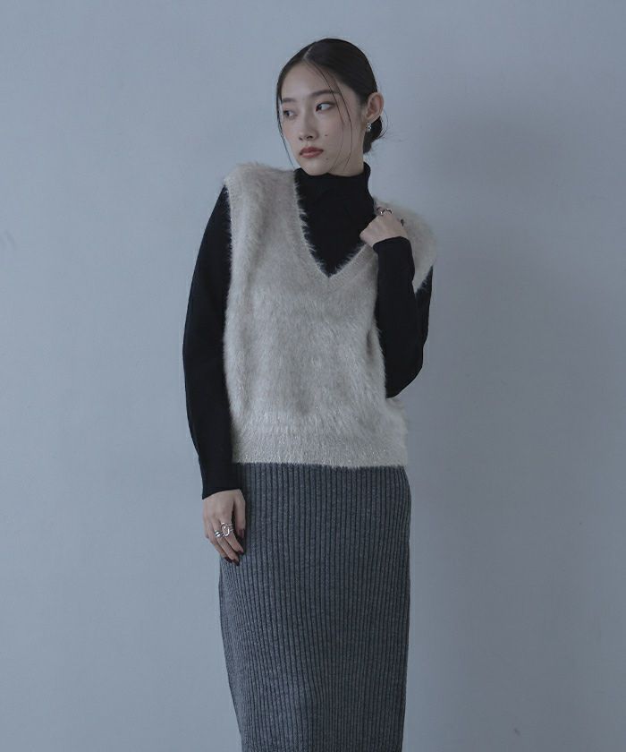 ・シャギーとラメの2種類の糸を使用したニットベスト