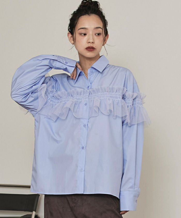 チュールフリルシャツ