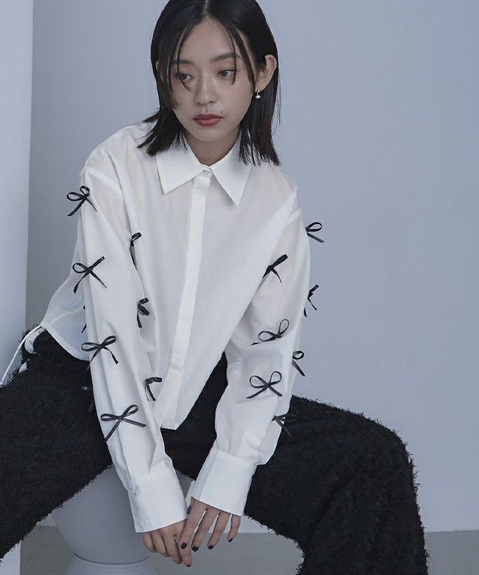 ・袖にリボンが付いたトレンド感満載のシャツ
