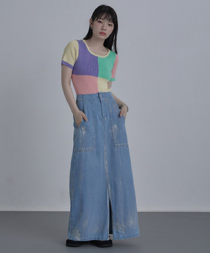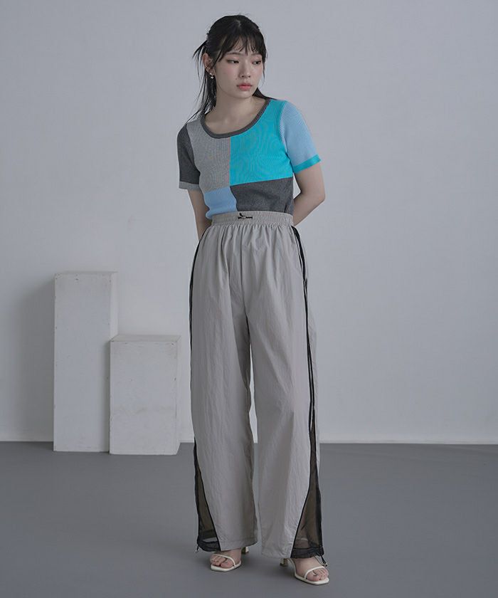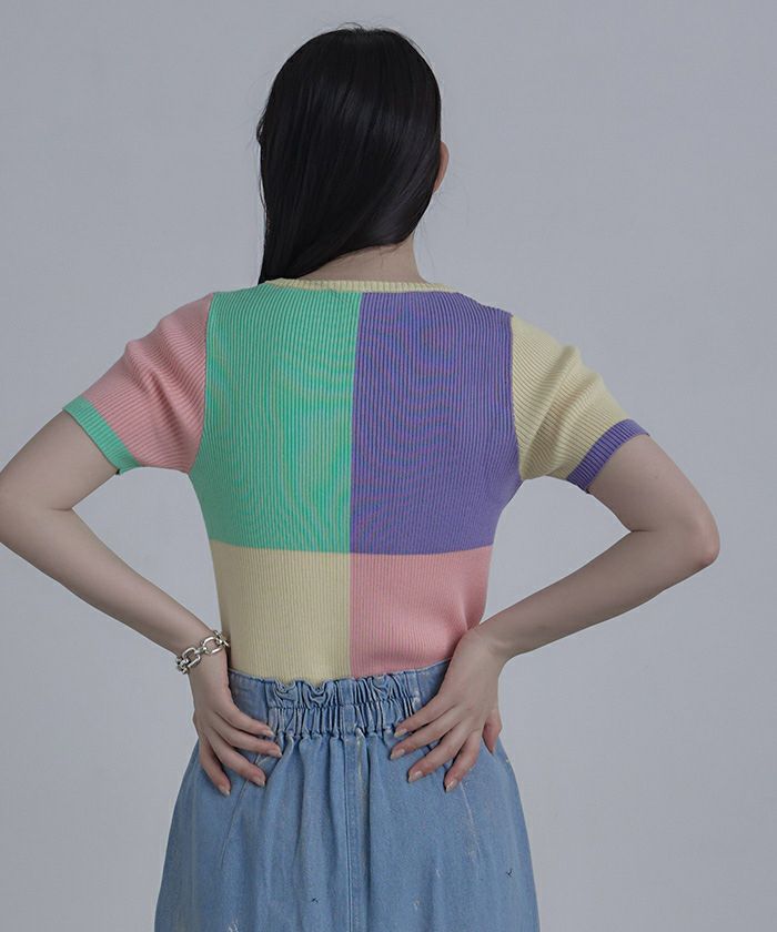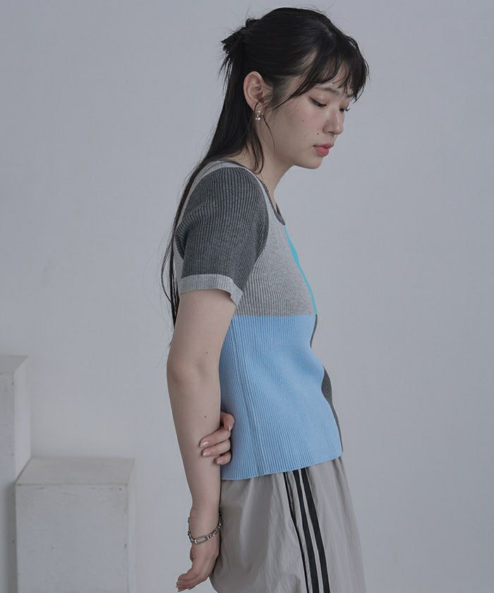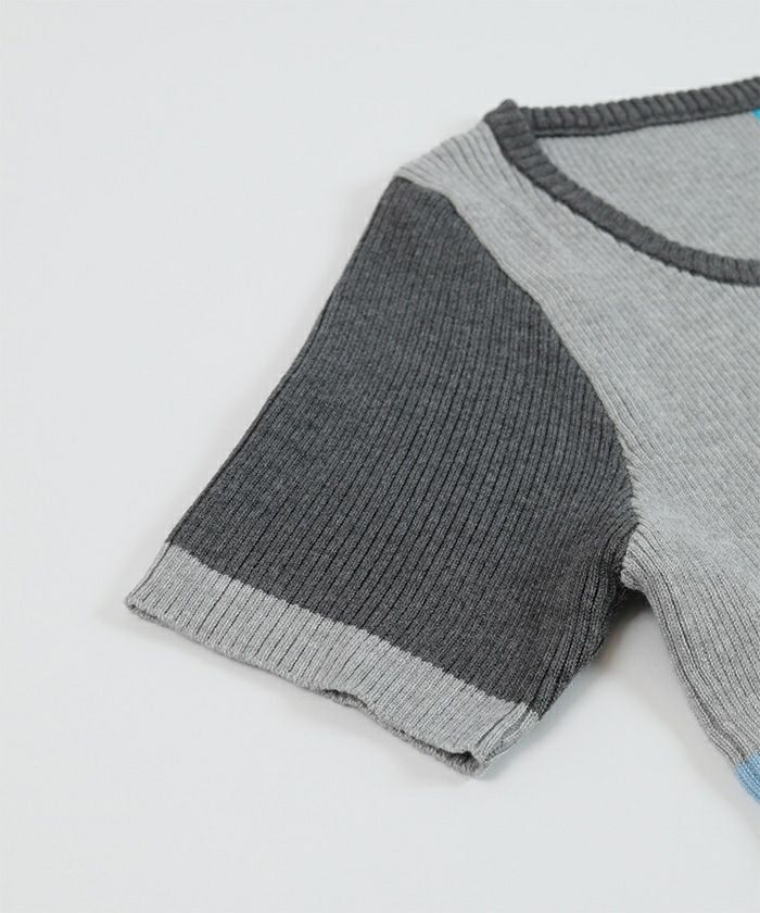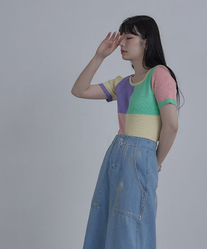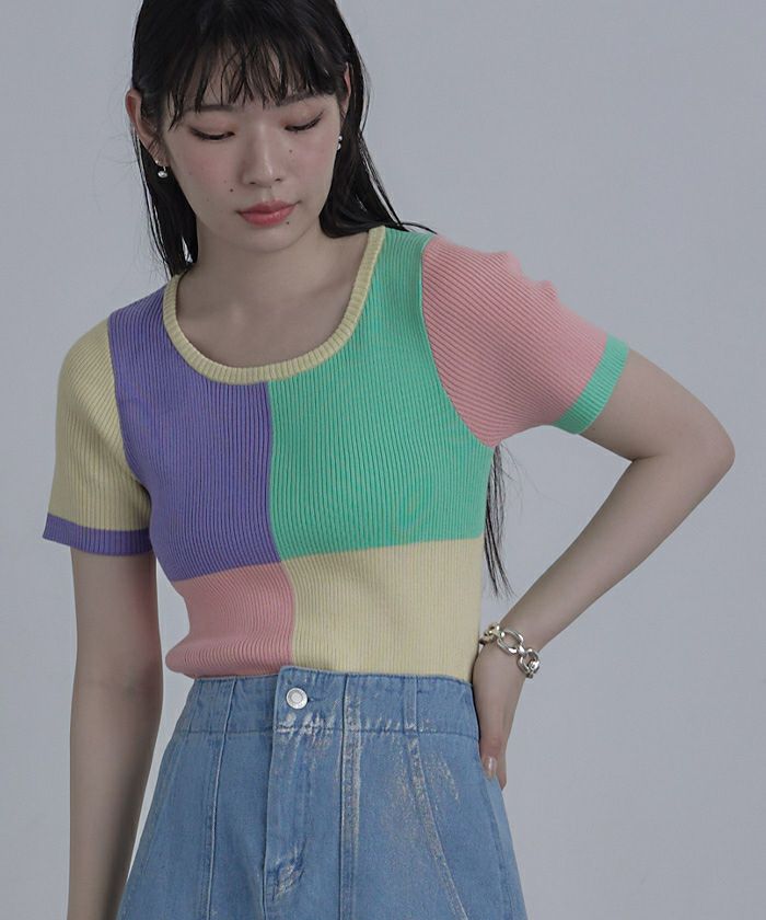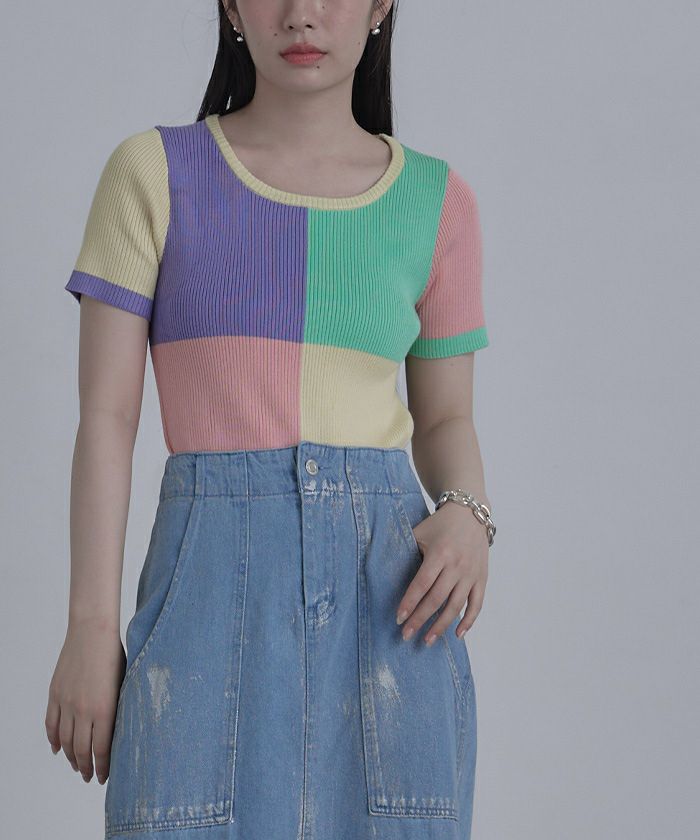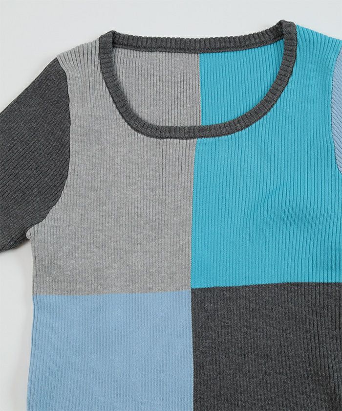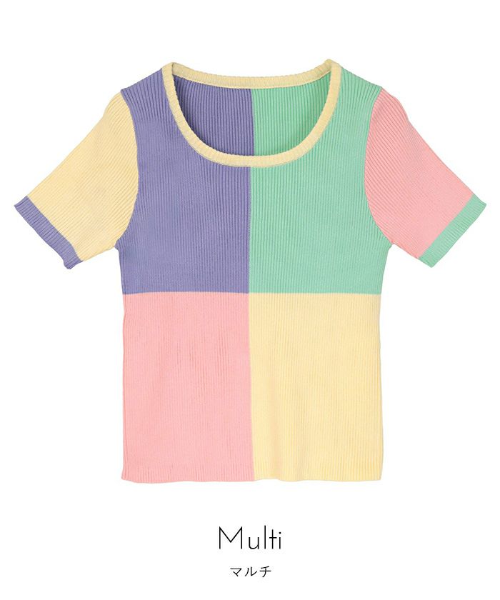 カラーパネル半袖リブトップス〔メール便可/80〕
