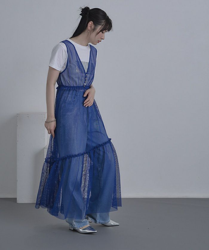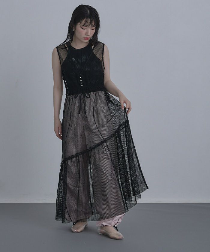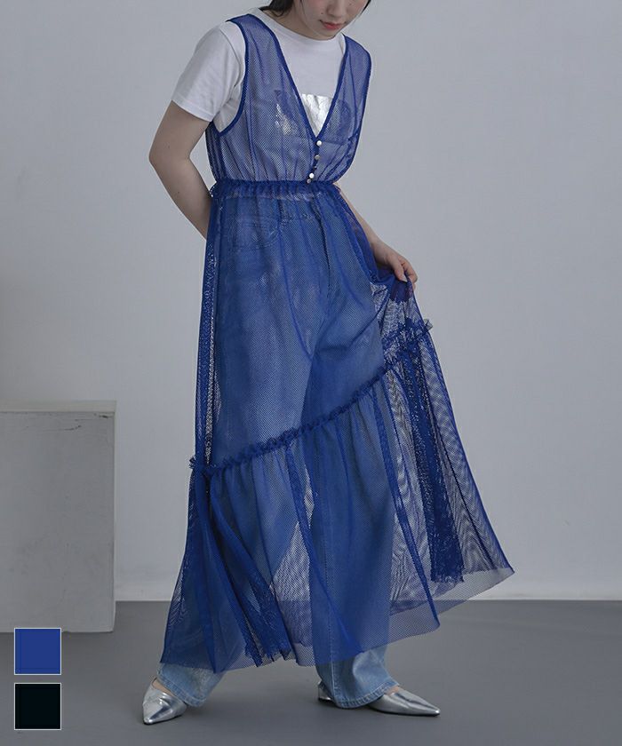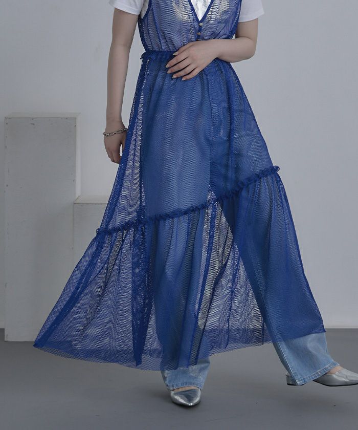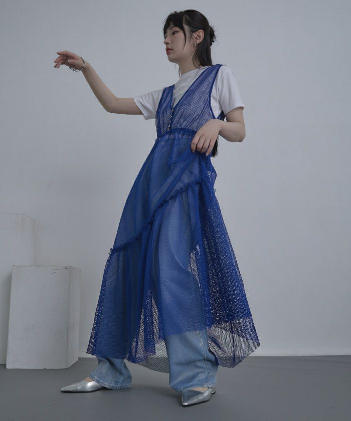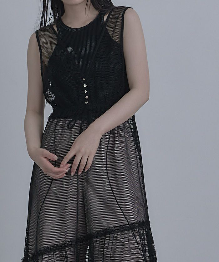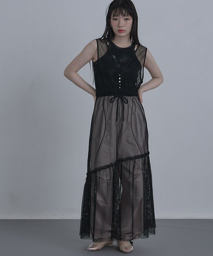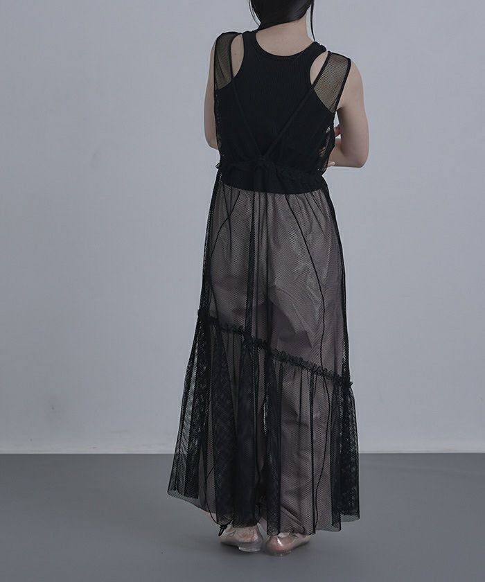 ・トレンドのレイヤードスタイルが簡単に完成するメッシュワンピース。