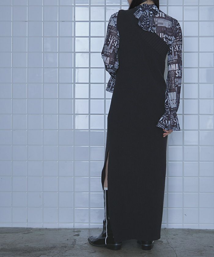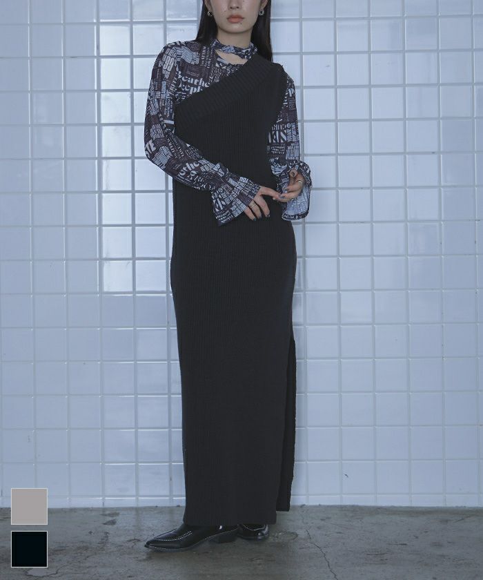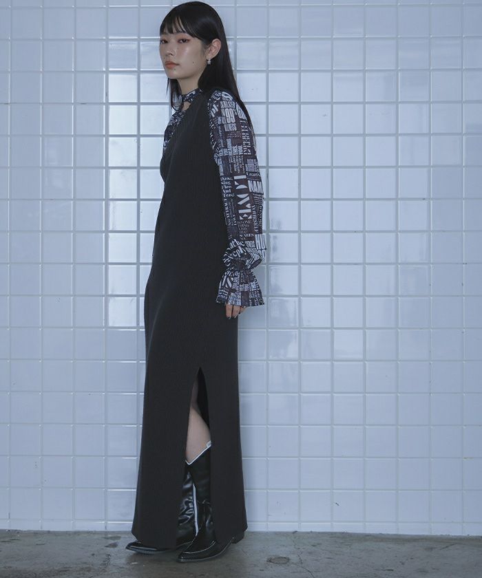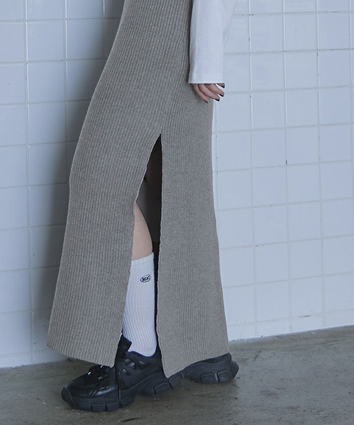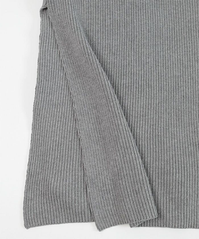 ・左裾に深めのスリットがあり、足さばきもよく、ボトムスとのレイヤードもおすすめです。