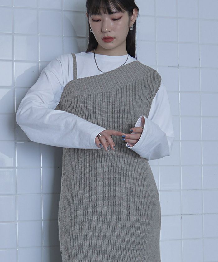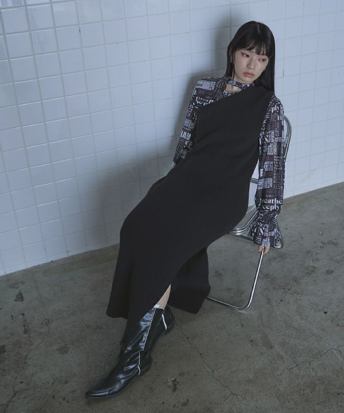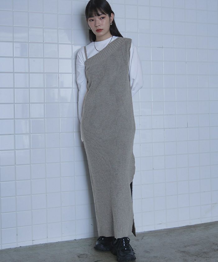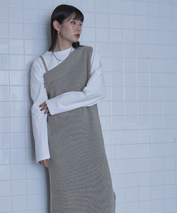・シンプルながらにモードに決まるワンショルダーデザイン