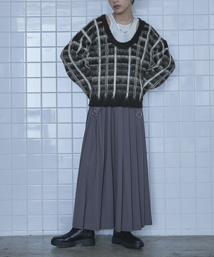 商品情報 ・大胆なチェック柄が存在感のあるニット