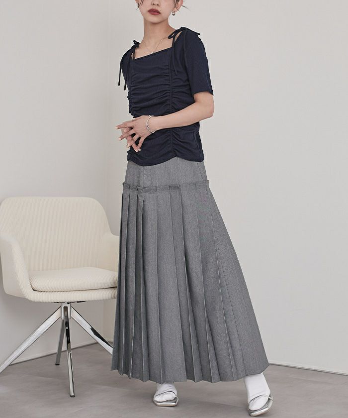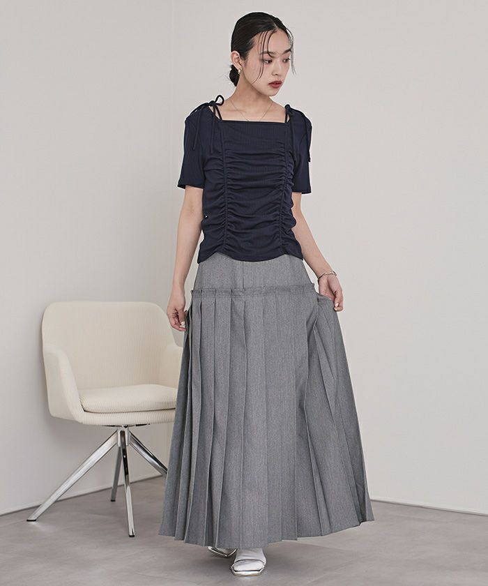 ・プリーツラインが脚長効果もあり、腰周りはすっきりとしているのでスタイルアップも叶います