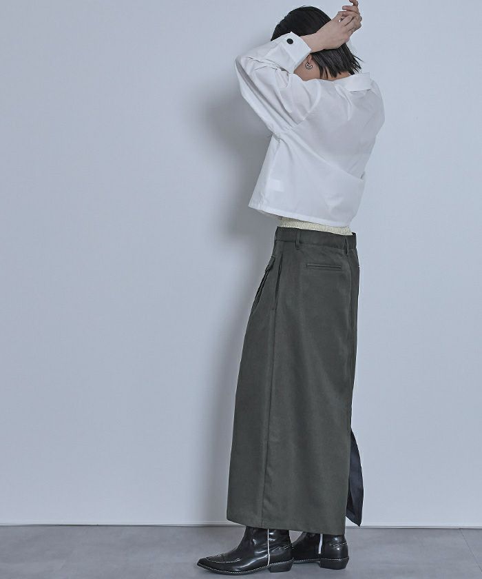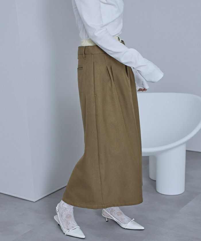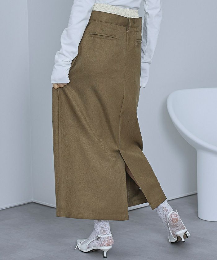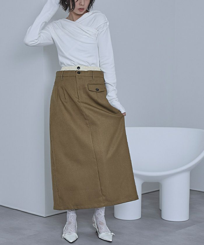 ・レイヤード風のダブルウエストがトレンド感たっぷりのロングスカート