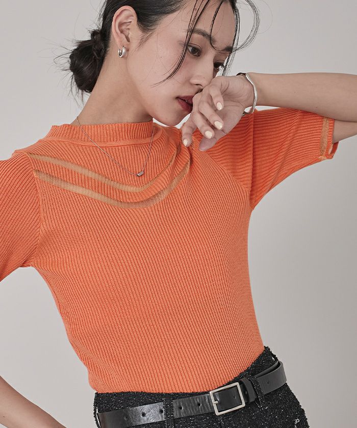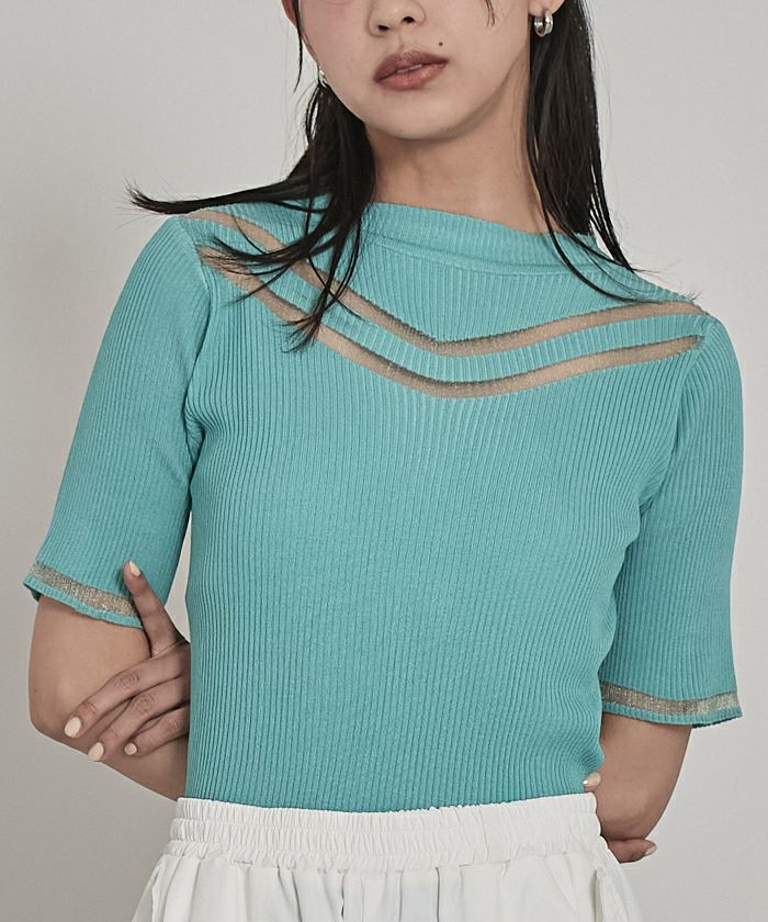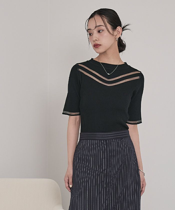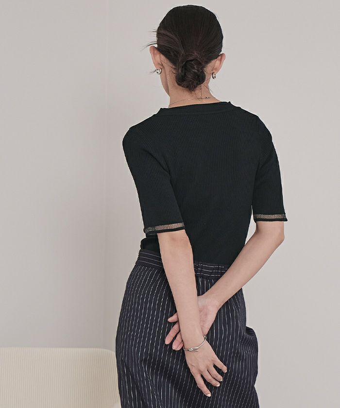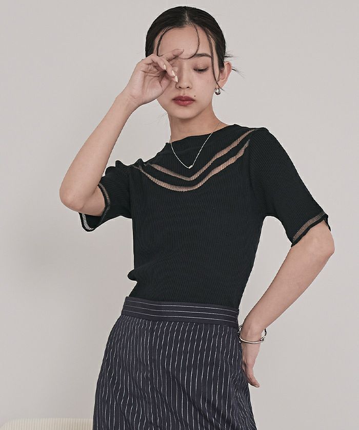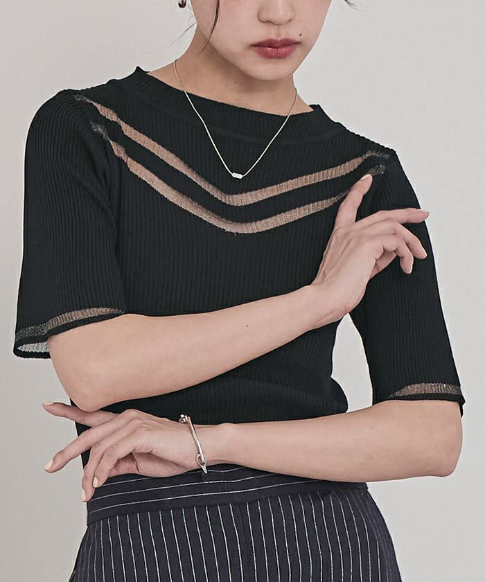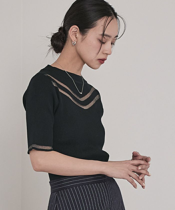 胸元と袖口にシアー感のある糸を使用し、透け感のあるラインが印象的なデザイントップス。5分袖仕様で気になる二の腕をさりげなくカバーしつつ、抜け感のあるスタイルを演出します。伸縮性のあるリブ素材を採用しており、快適でストレスフリーな着心地を実現。ベーシックなフォルムに程よくデザイン性を加えた一枚は、デイリーから特別なシーンまで幅広く活躍します。
