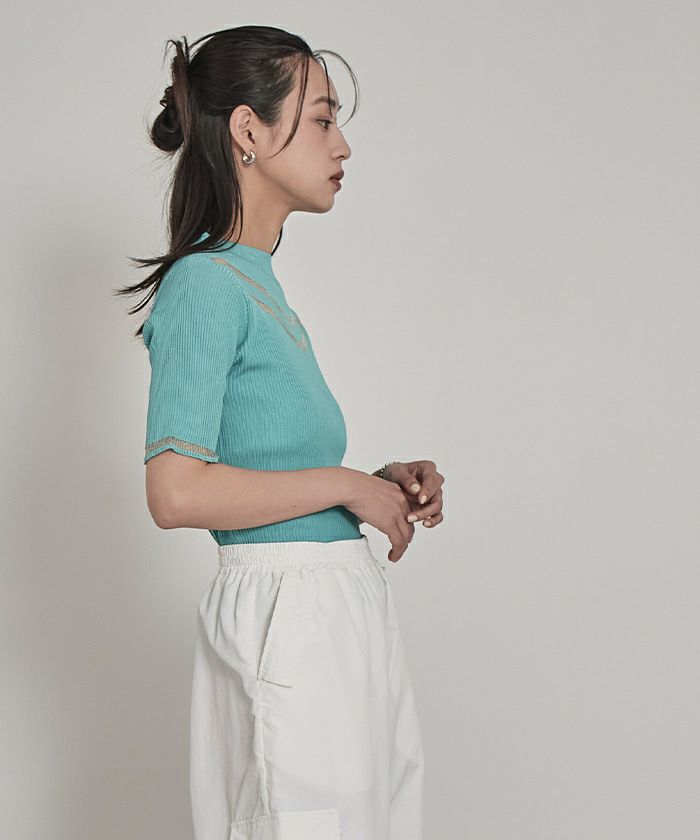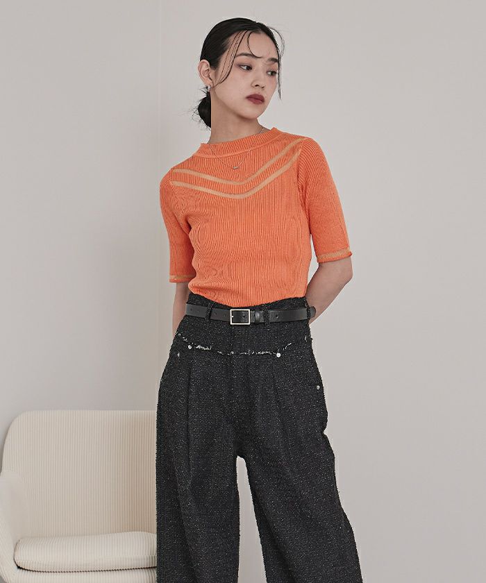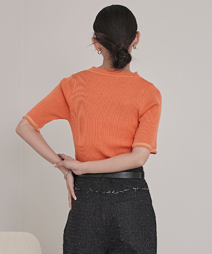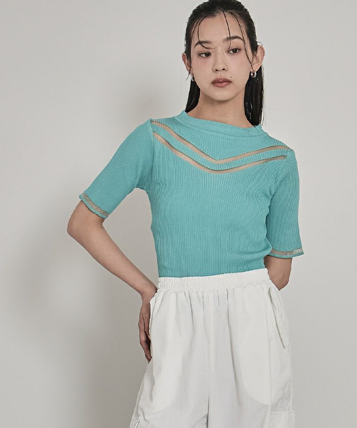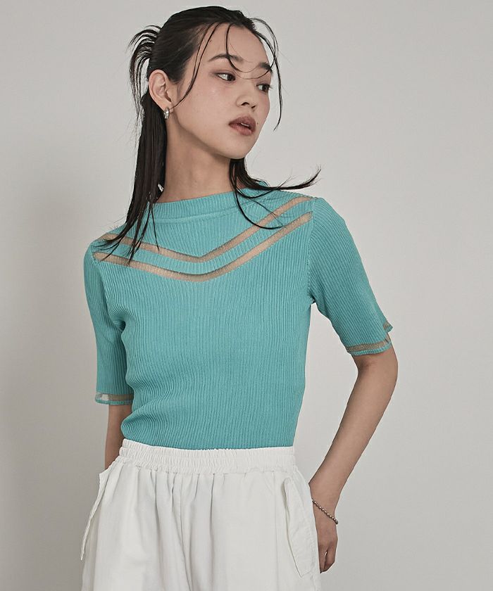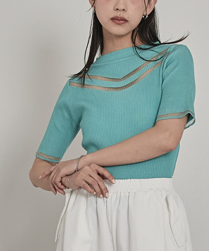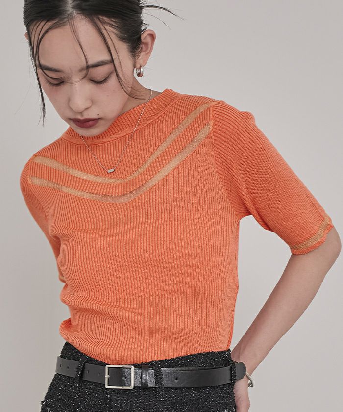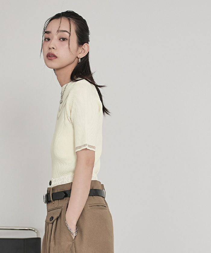 胸元と袖口にシアー感のある糸を使用し、透け感のあるラインが印象的なデザイントップス。5分袖仕様で気になる二の腕をさりげなくカバーしつつ、抜け感のあるスタイルを演出します。伸縮性のあるリブ素材を採用しており、快適でストレスフリーな着心地を実現。ベーシックなフォルムに程よくデザイン性を加えた一枚は、デイリーから特別なシーンまで幅広く活躍します。