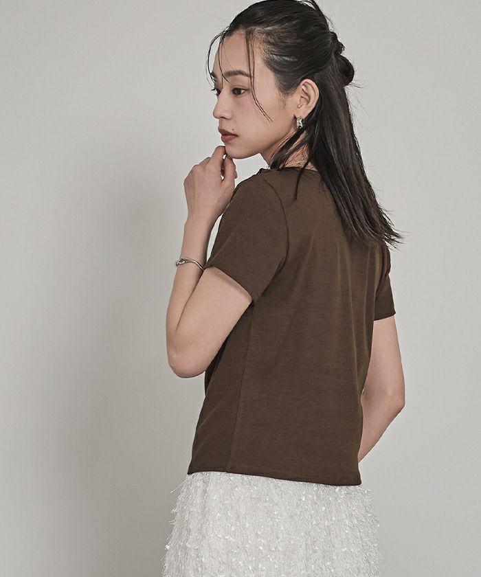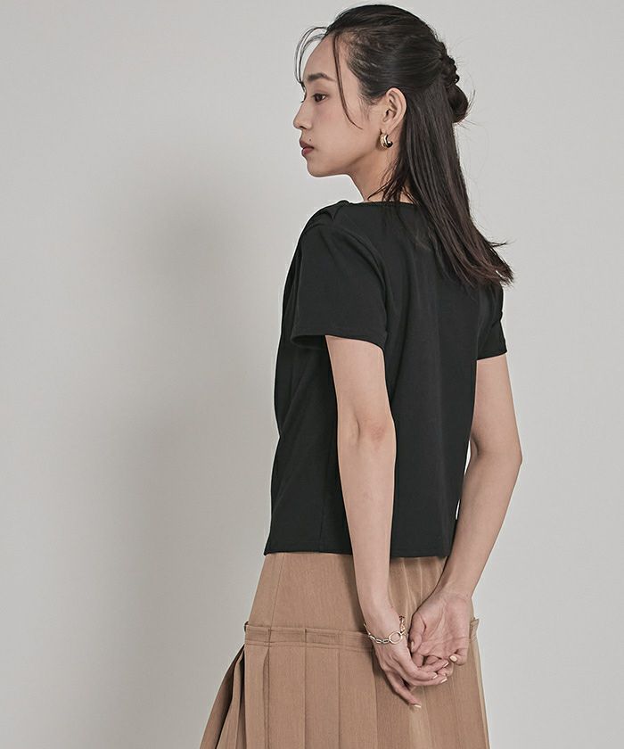 ・首周りの立体感のあるドレープデザインがデコルテラインを綺麗に見せてくれます◎