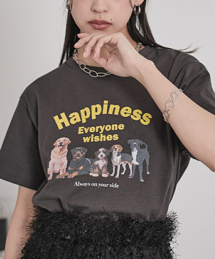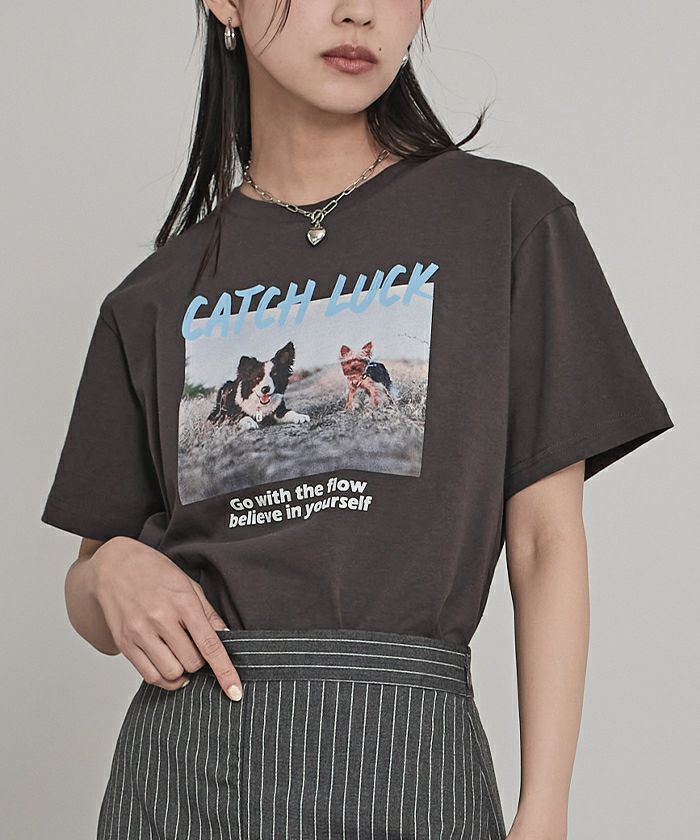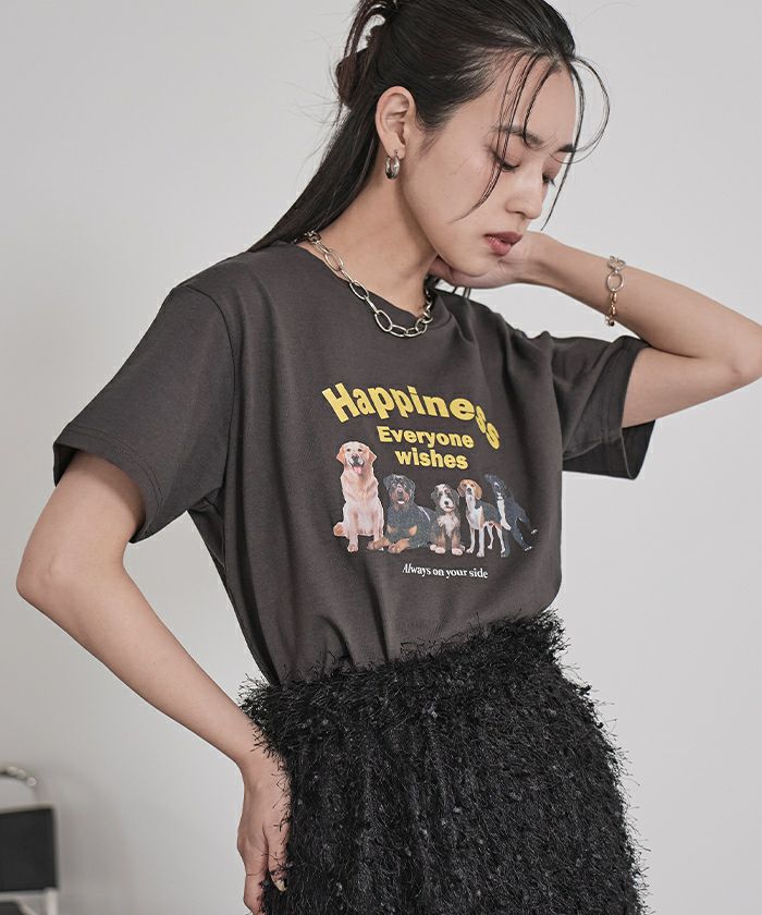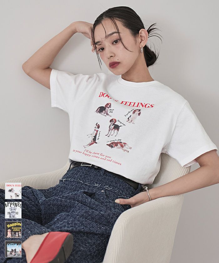・存在感のある可愛らしい犬プリントのアソートTシャツ