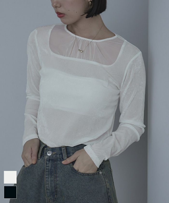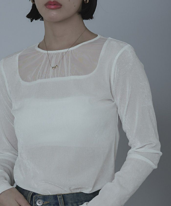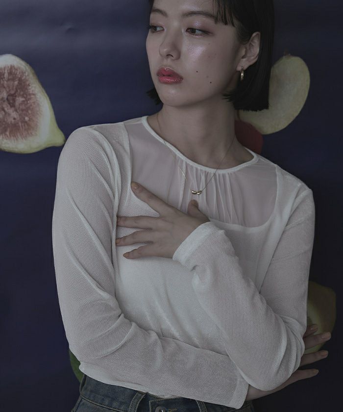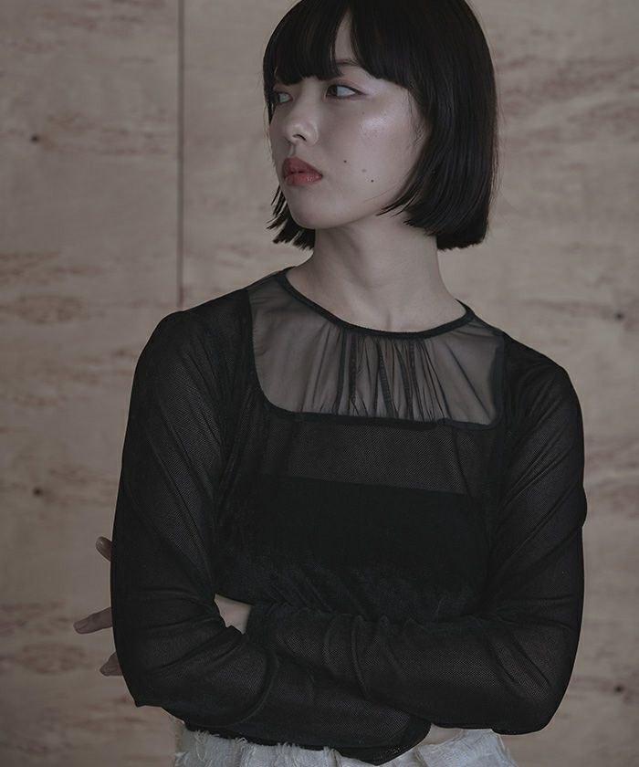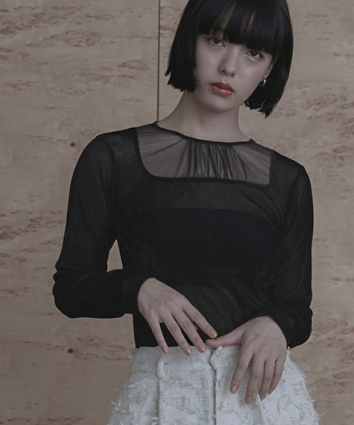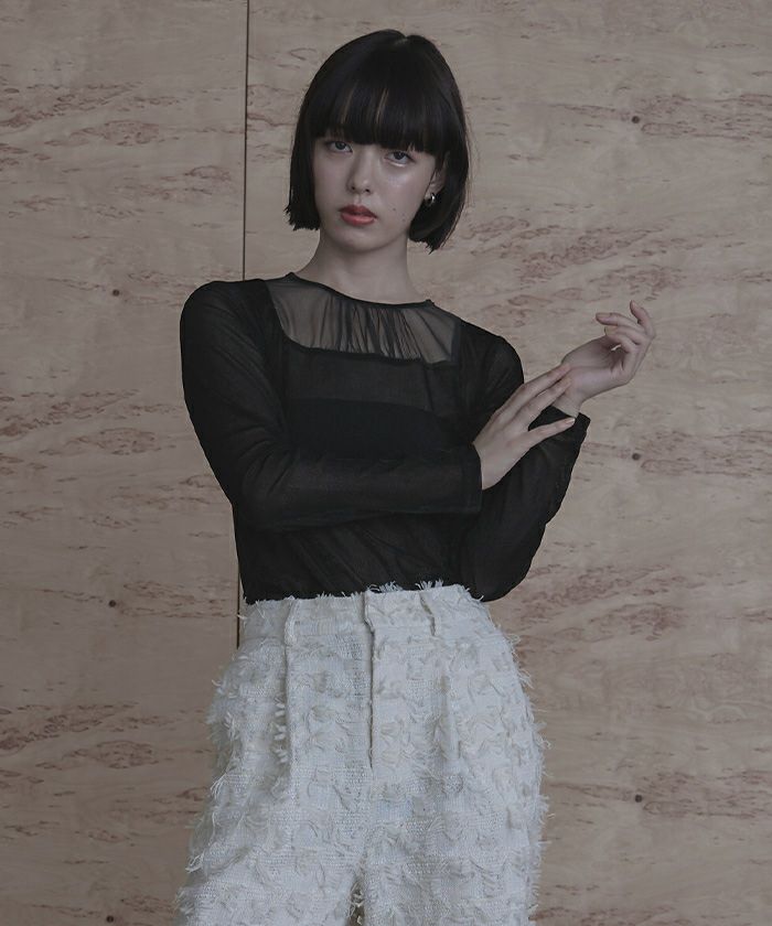 ・シアーベロア素材とチュールのシアー切替が抜け感をプラス