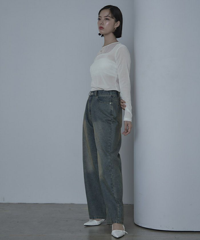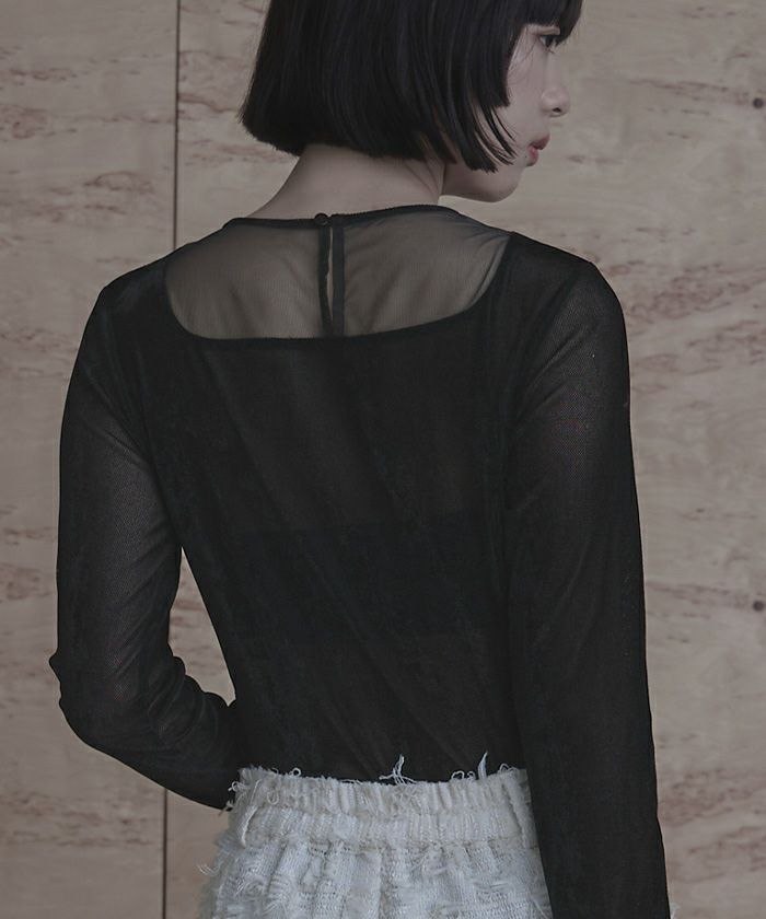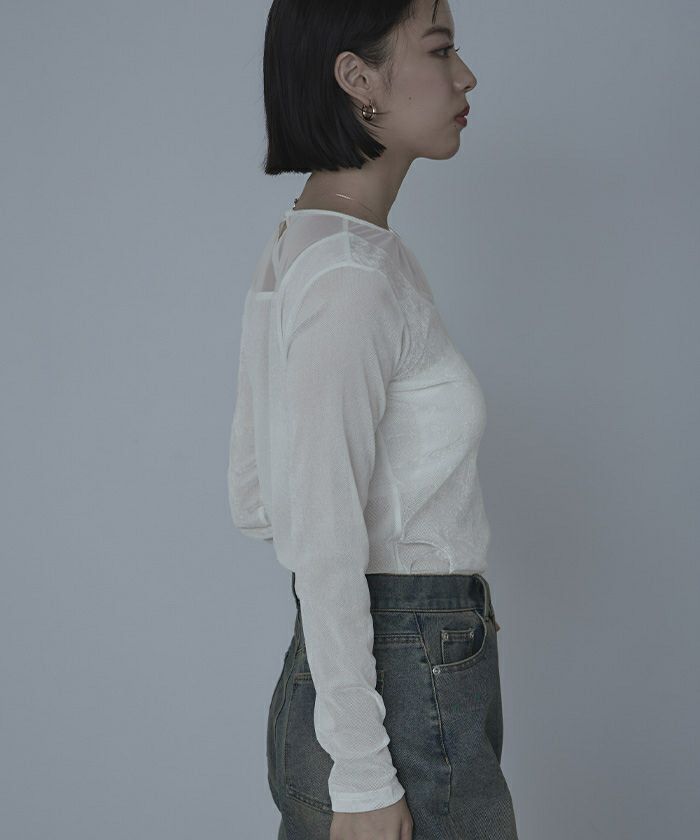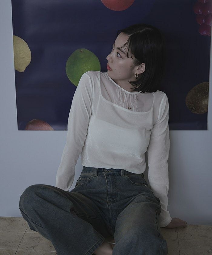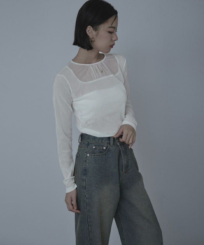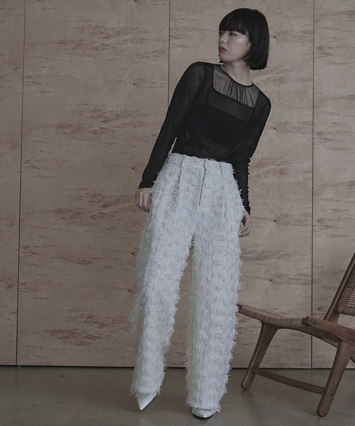 ・シアーベロア素材とチュールのシアー切替が抜け感をプラス