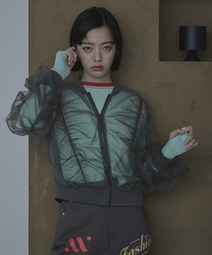 ギャザーボリュームシアーブルゾン