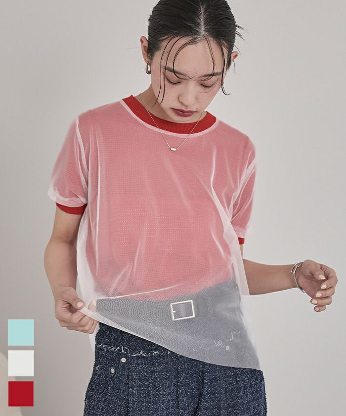 着用 / サイズ:F カラー:レッド、ライトブルー、オフホワイト