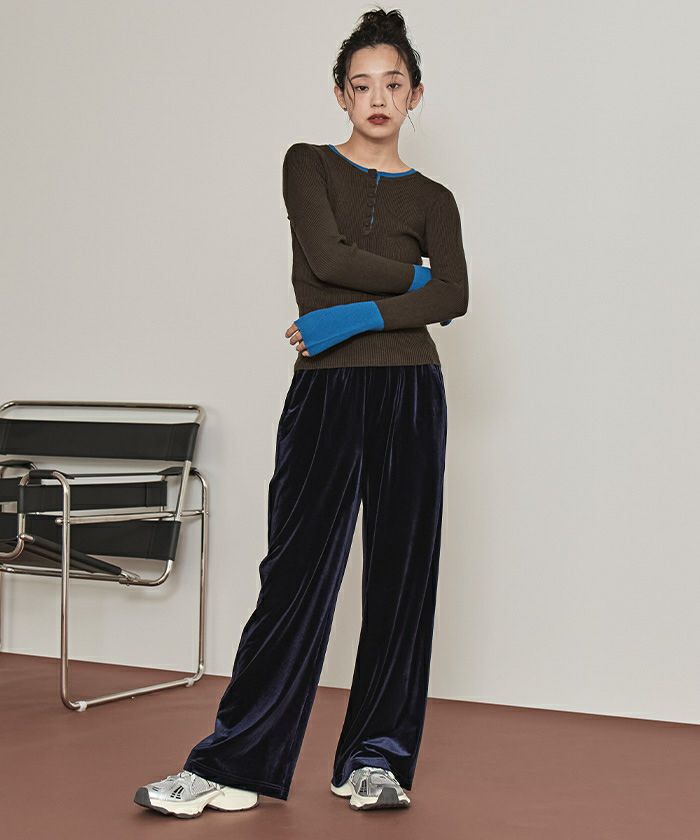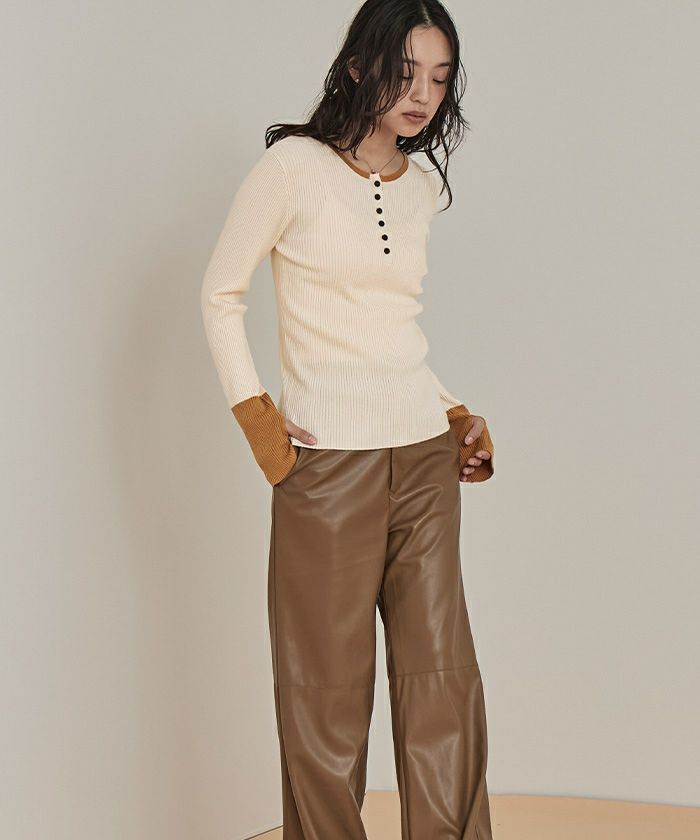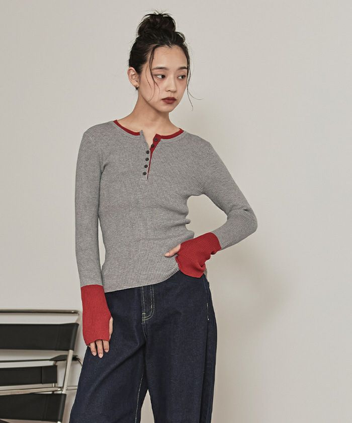 ・カジュアルさとトレンド感あるヘンリーネックがポイント