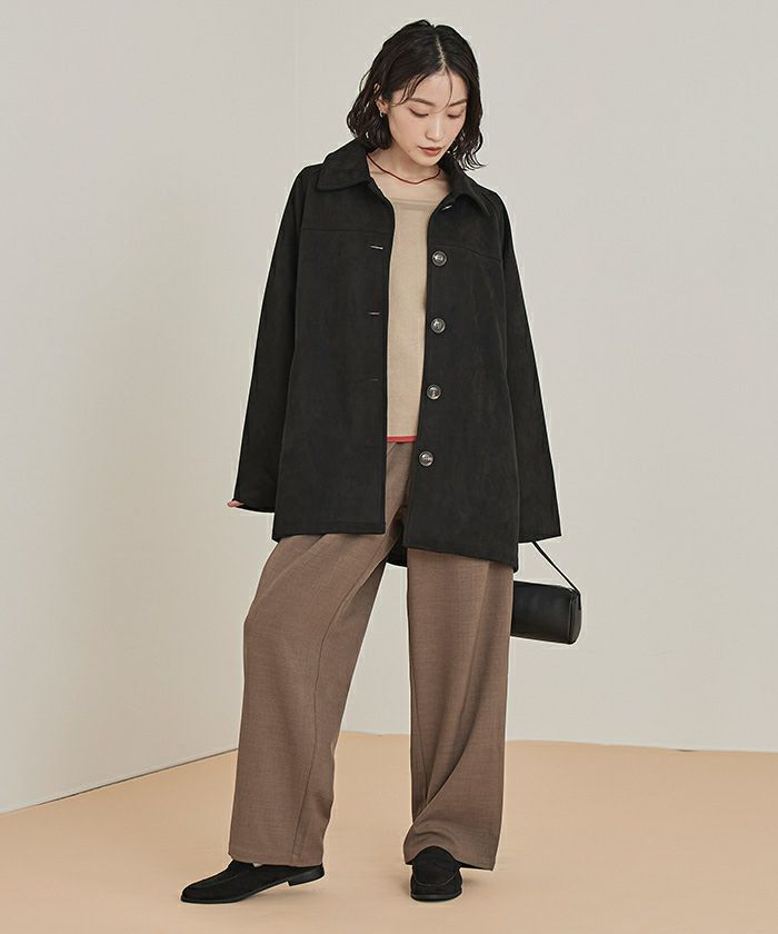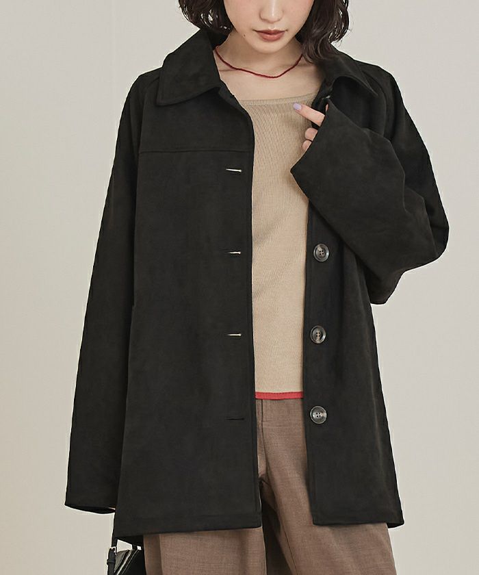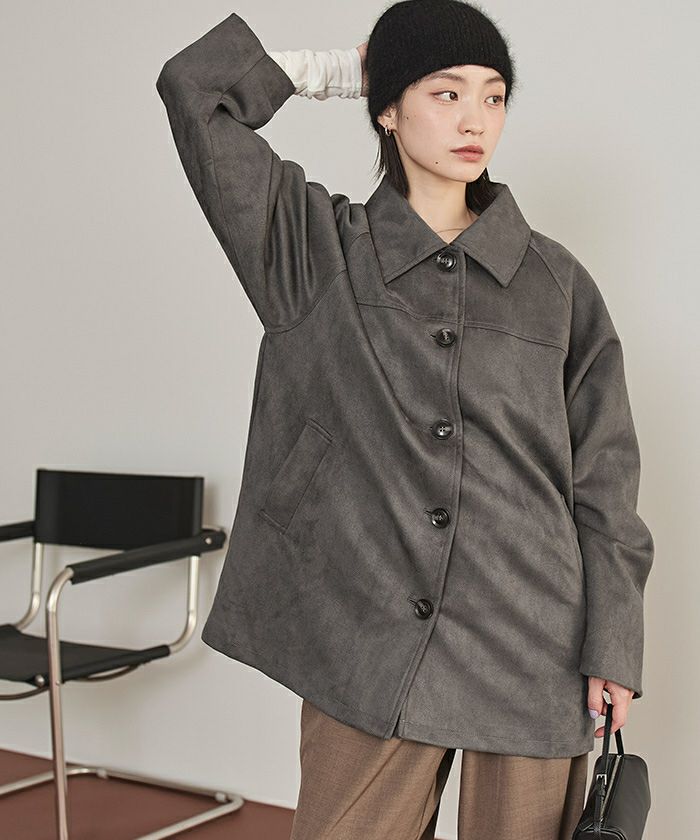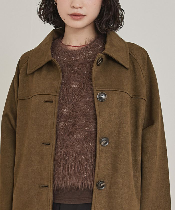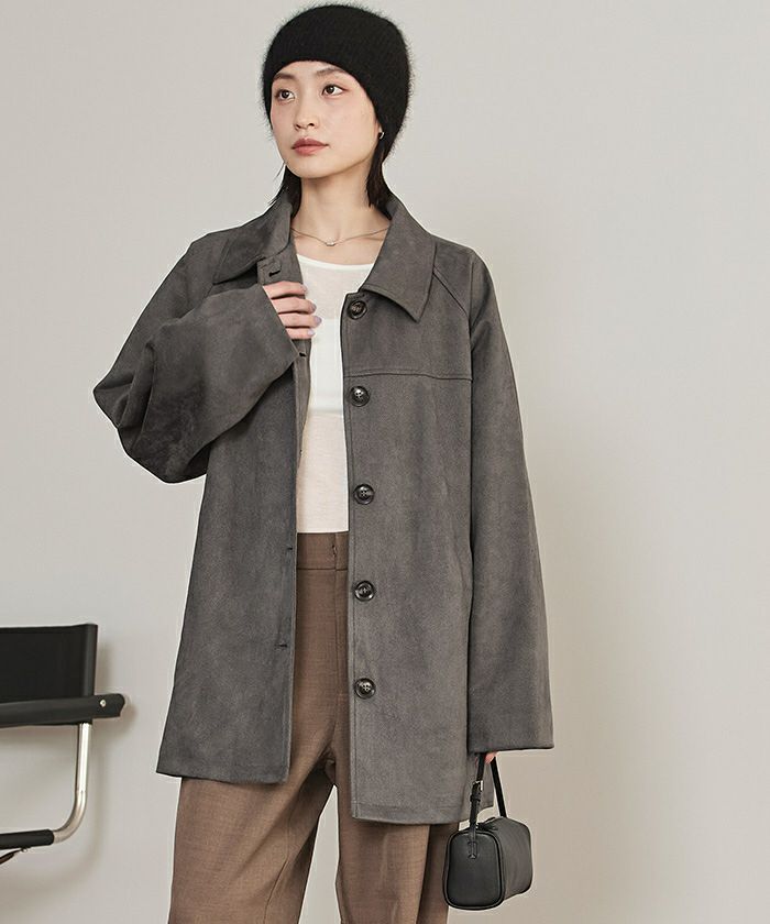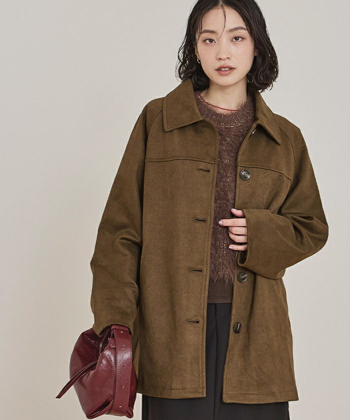 ・トレンドのフェイクスエード素材を使用したステンカラージャケット