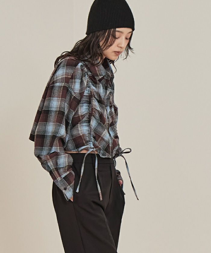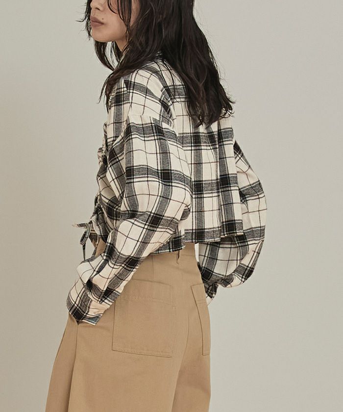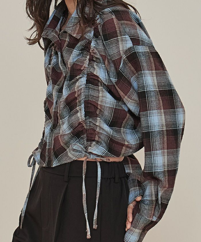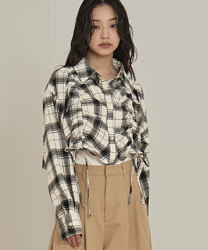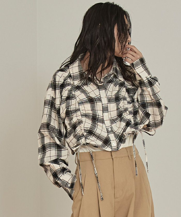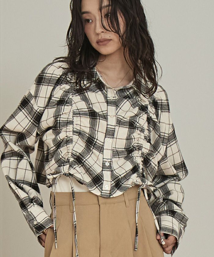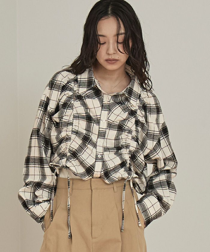 商品情報 ・人気のドロストデザインにトラッドなチェック柄が目を惹く一着