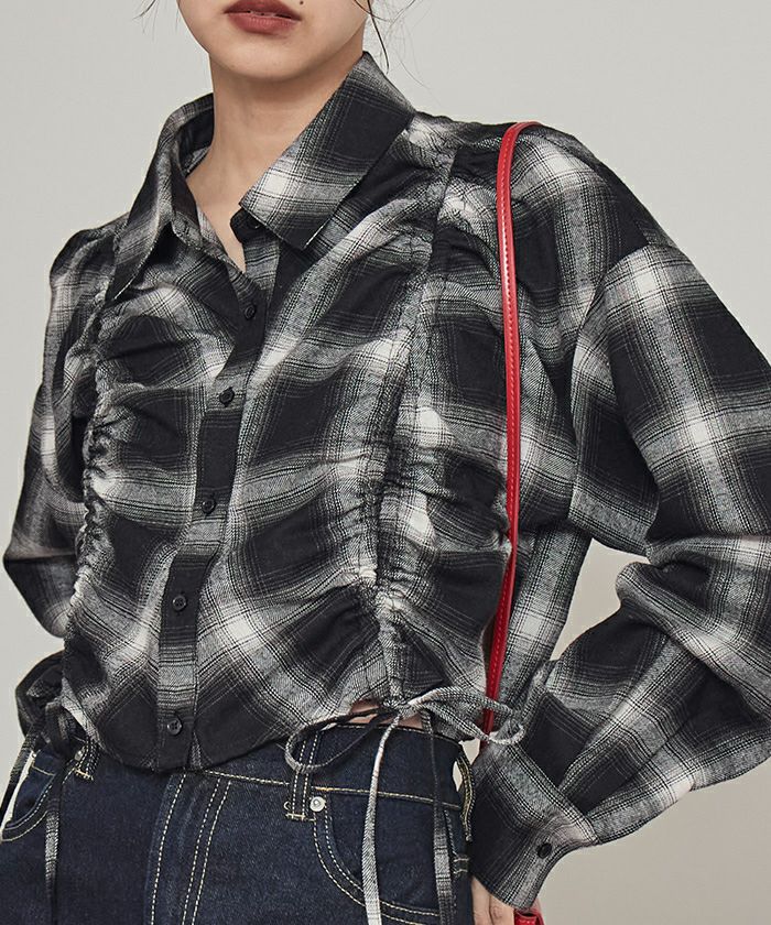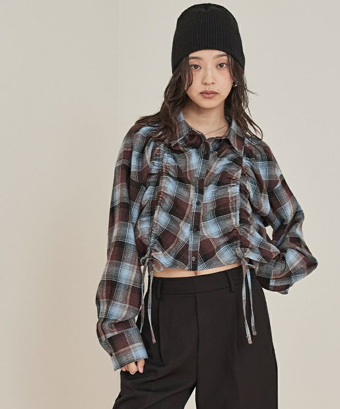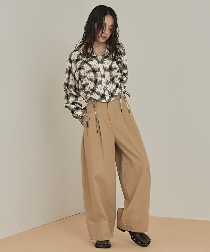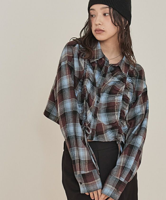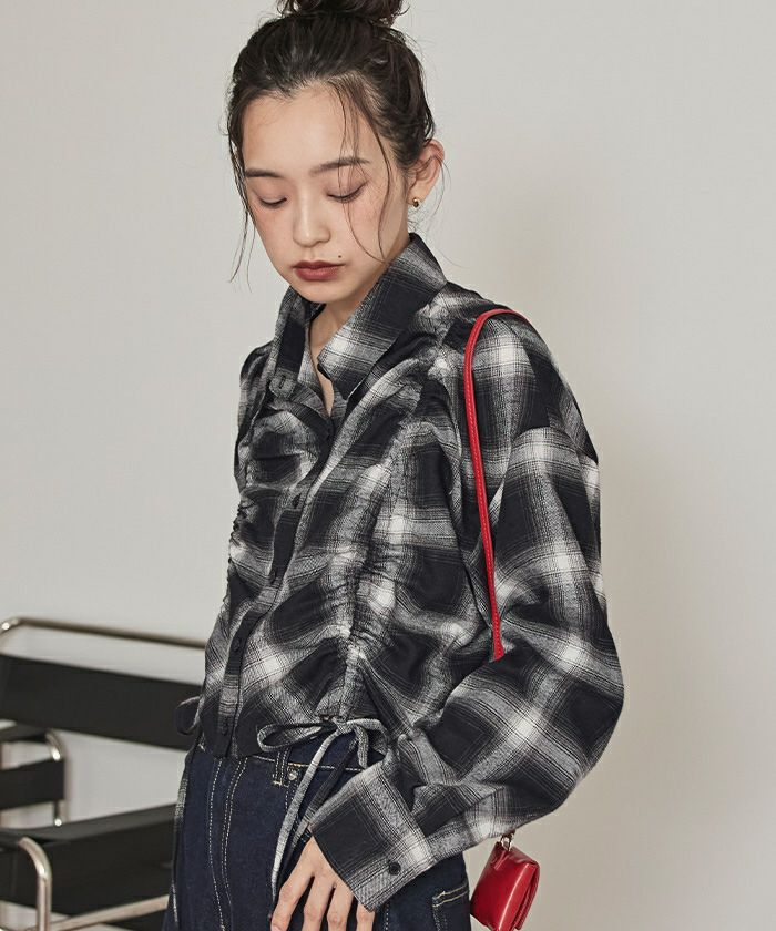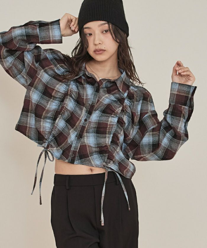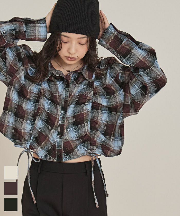 商品情報 ・人気のドロストデザインにトラッドなチェック柄が目を惹く一着