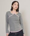 ・フロントのツイストデザインキャミソールとコンパクトなトップスの配色アンサンブル