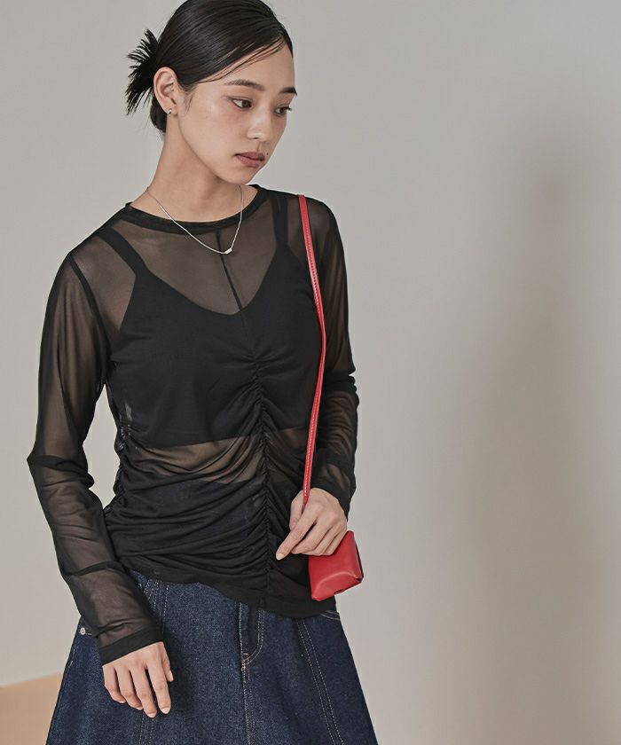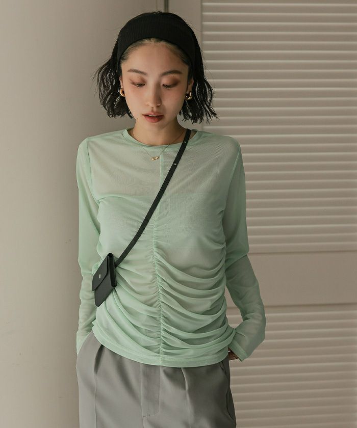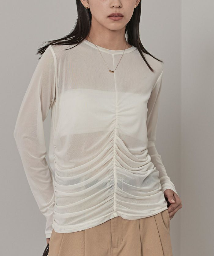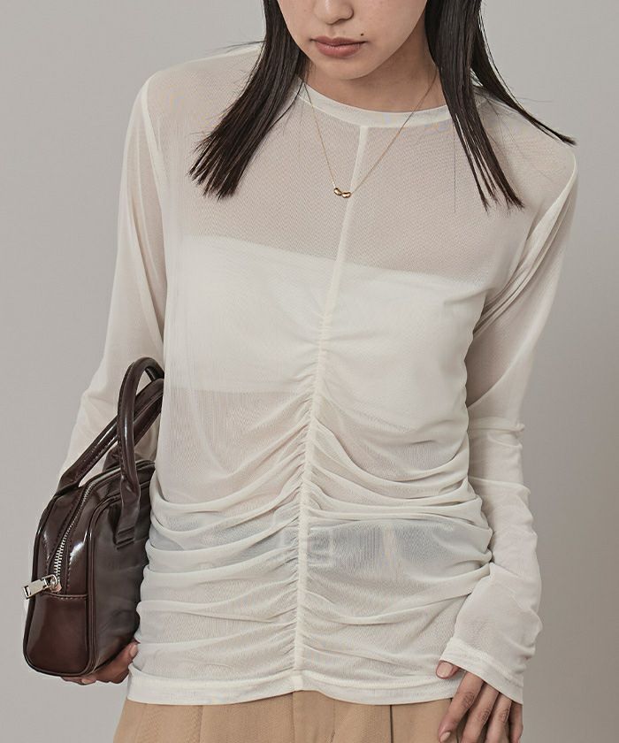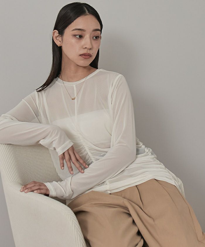 ・ギャザーたっぷりのボリューム感がかわいいドレープトップス。