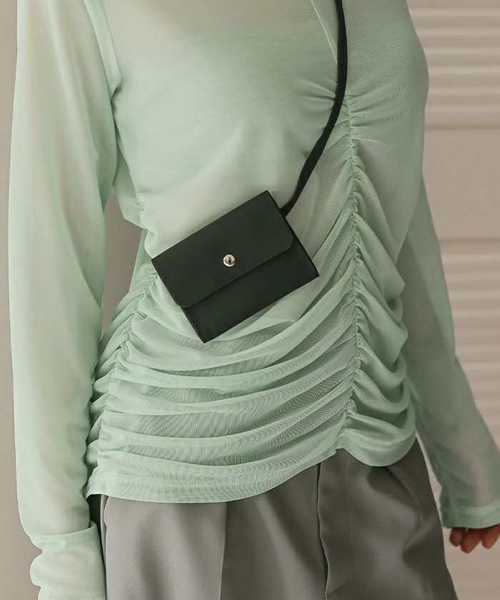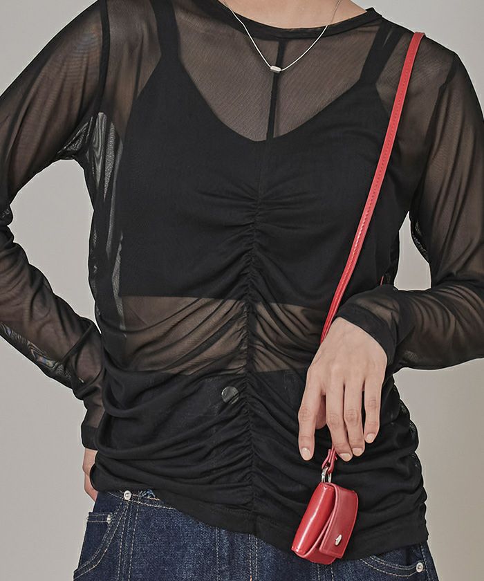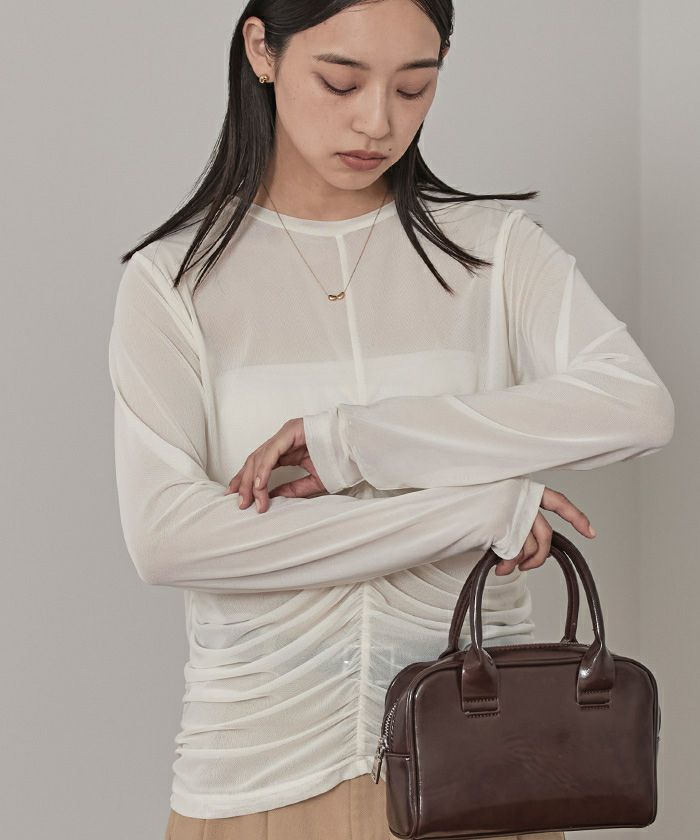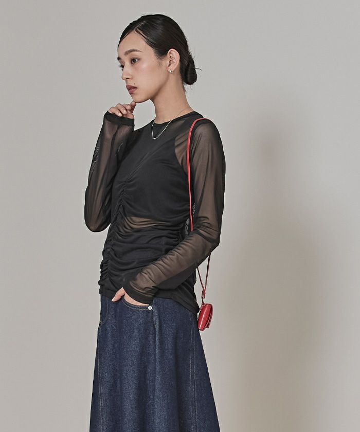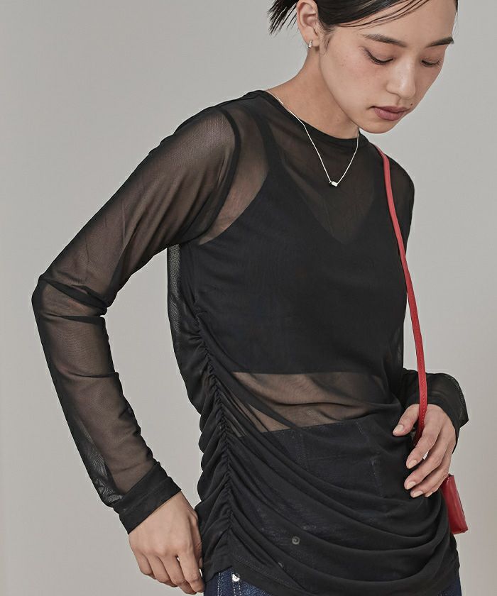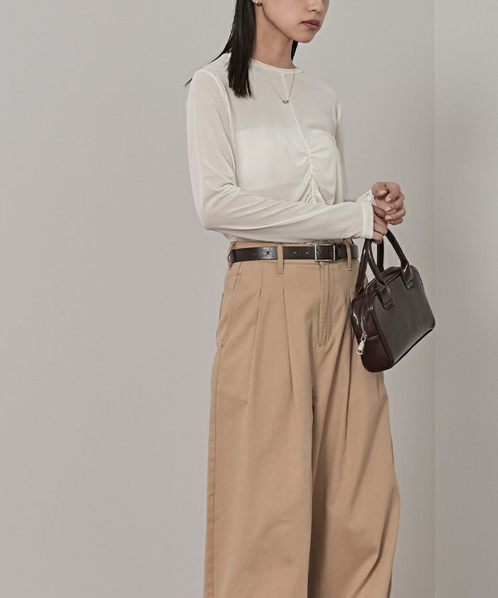 ・ギャザーたっぷりのボリューム感がかわいいドレープトップス。