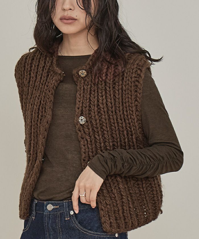 ・手編みならではのほっこりとした雰囲気が特徴のローゲージニット