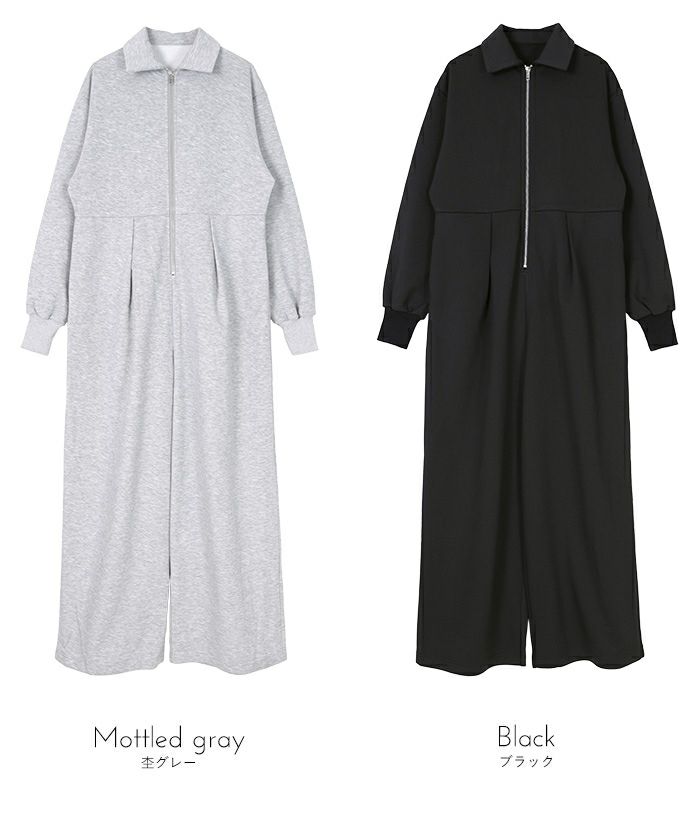 フロントジップスウェットオールインワン