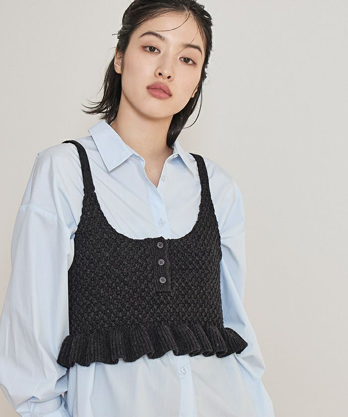 ・ふんわりとしたシュシュがセットになったニットキャミビスチェ