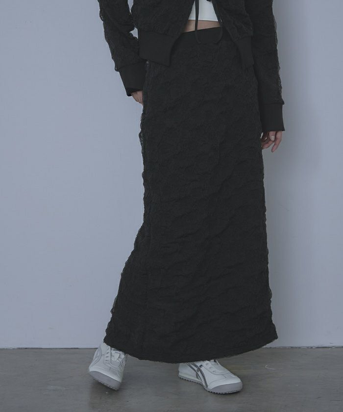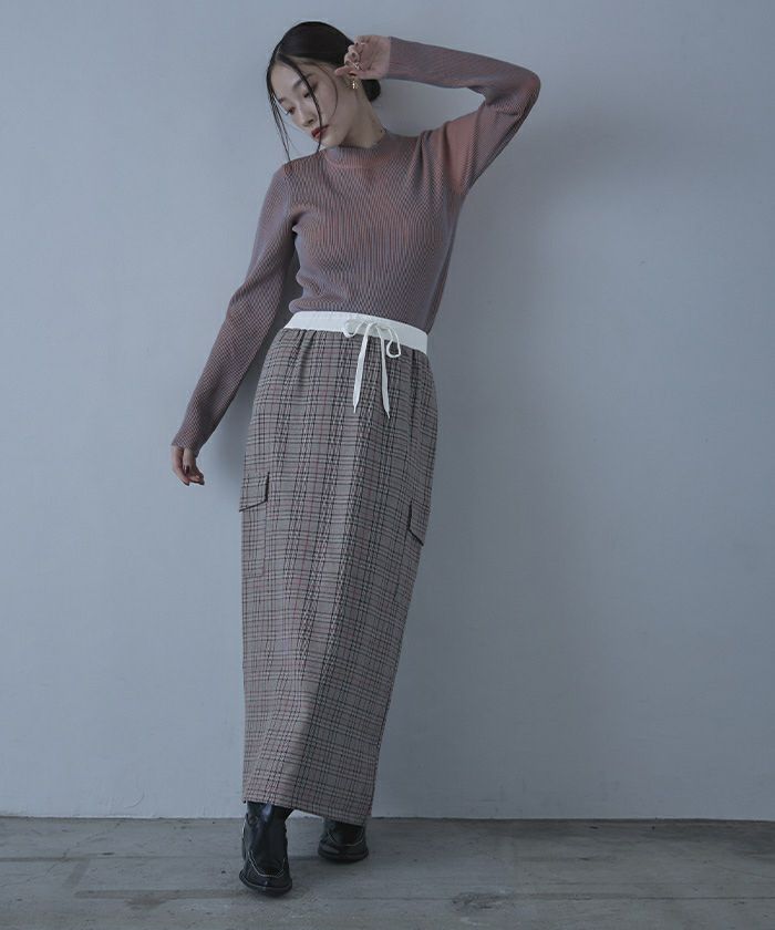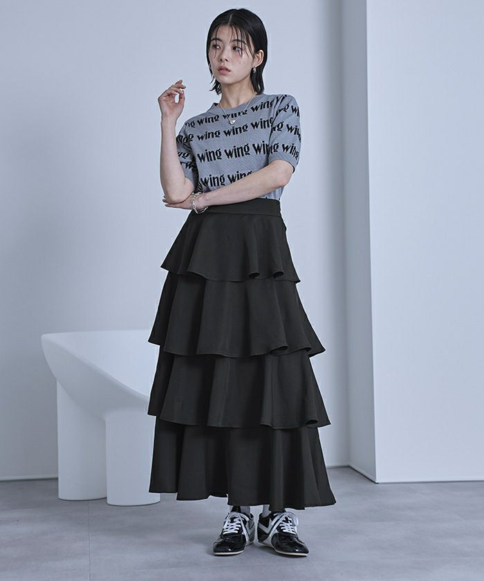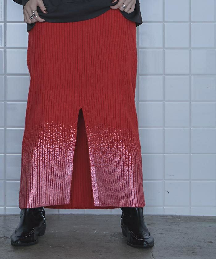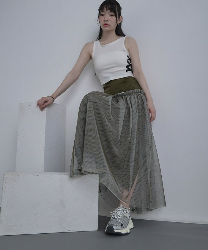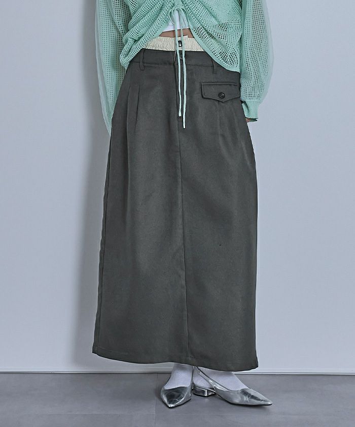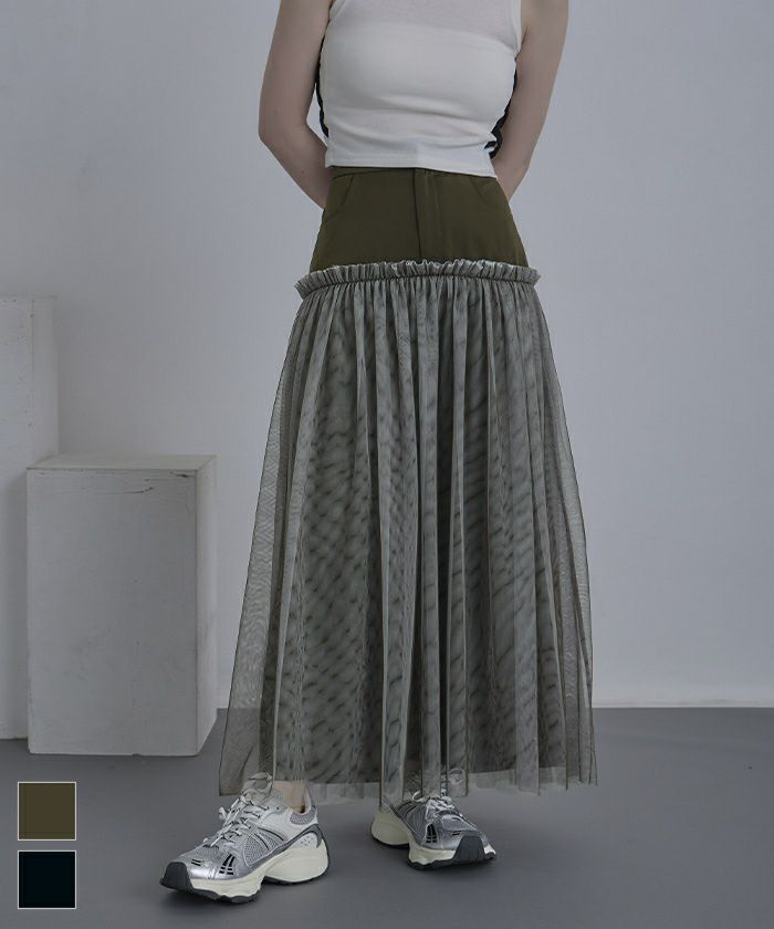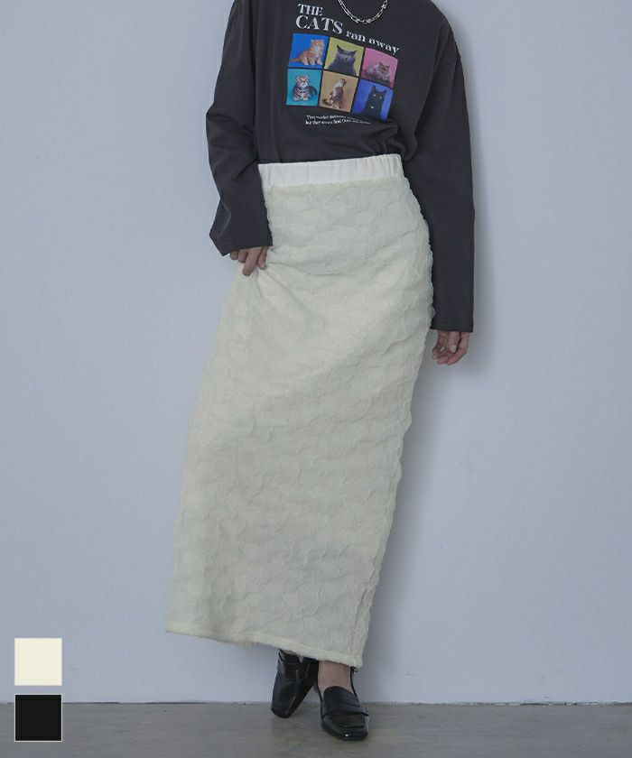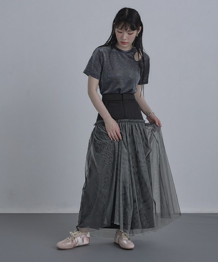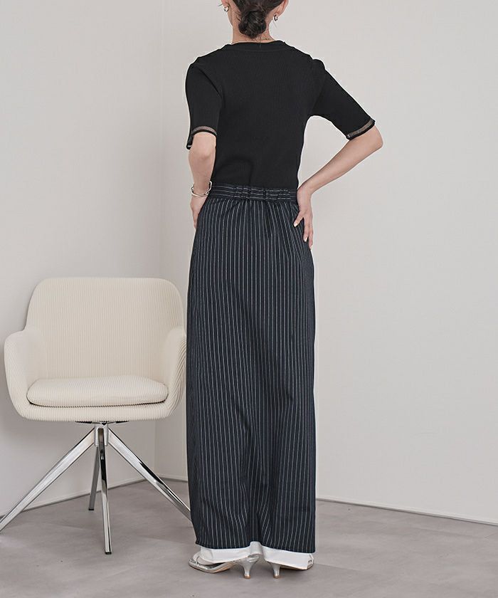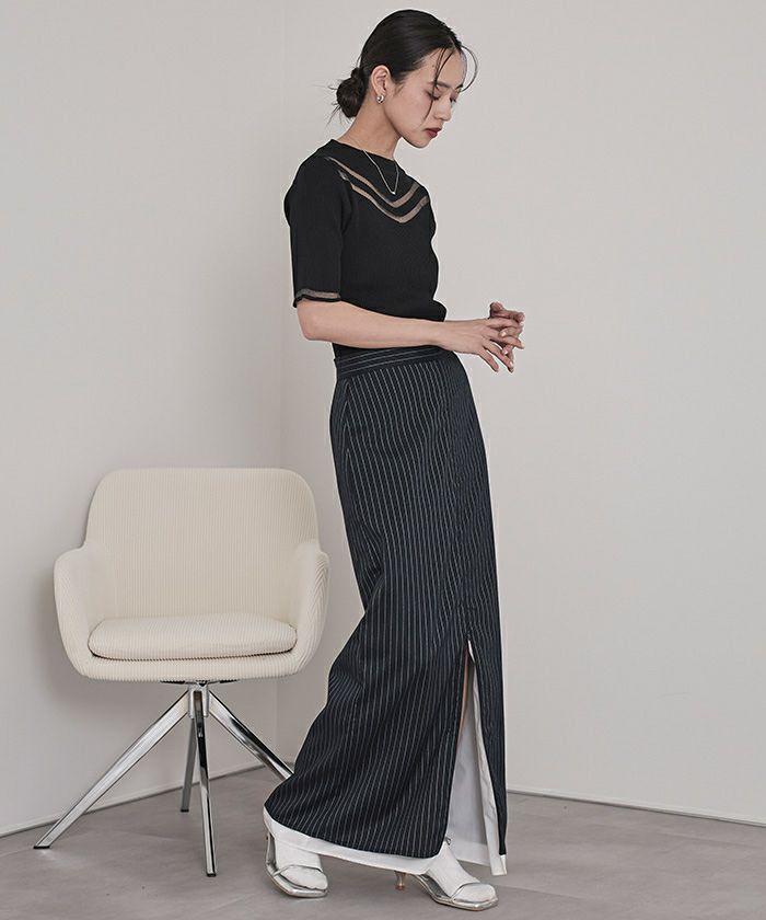 透かし編みニットレイヤードスカート〔メール便可/60〕