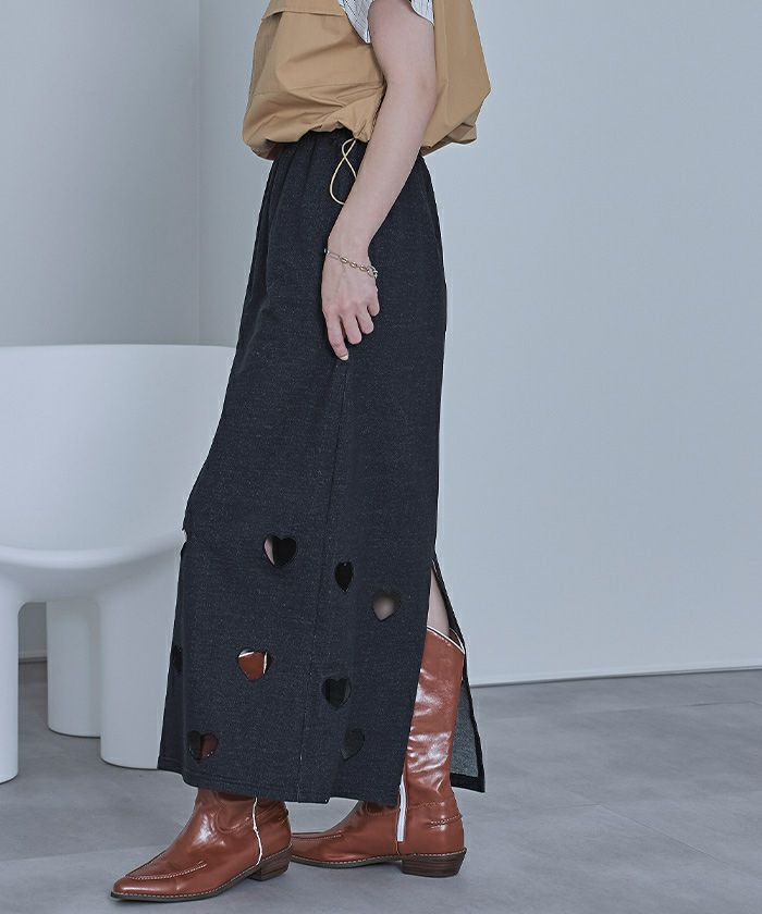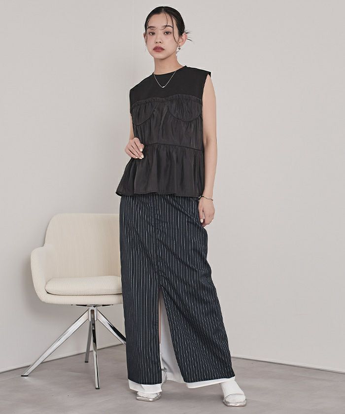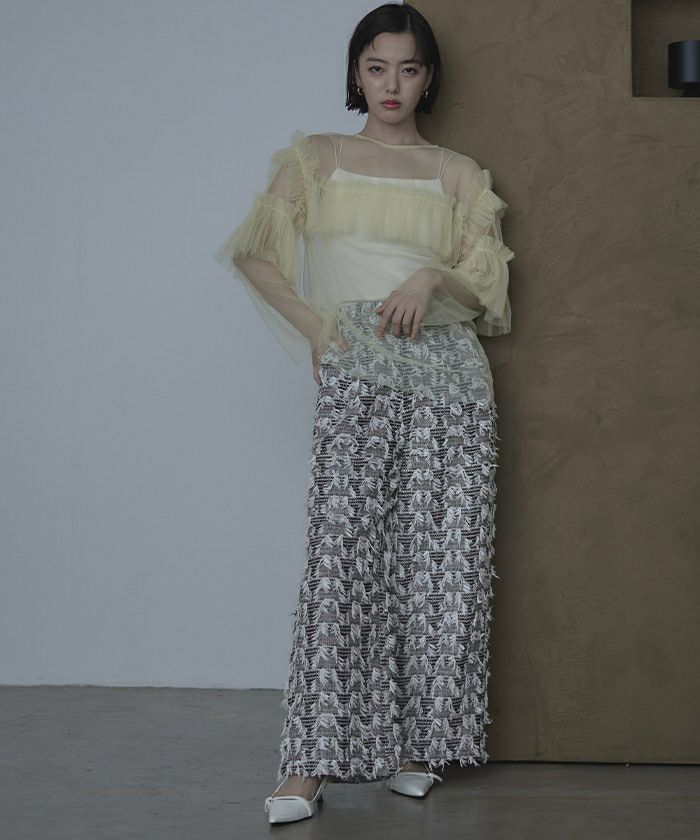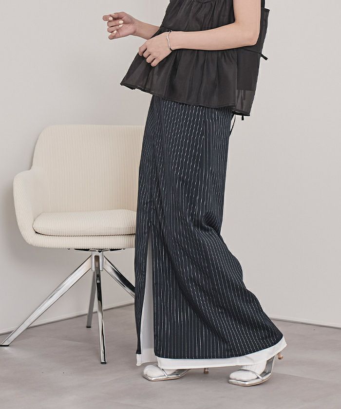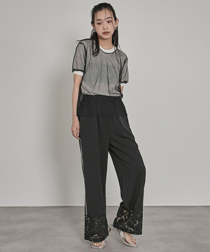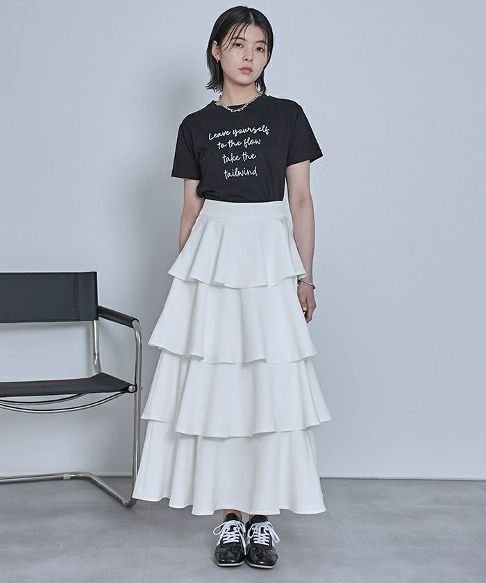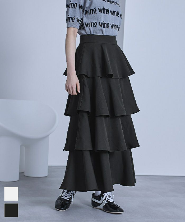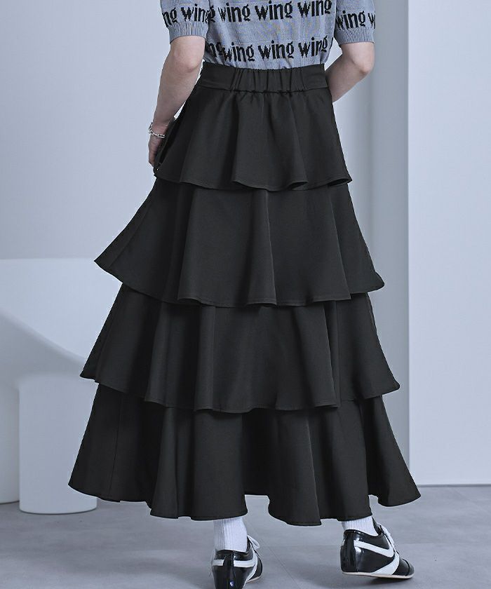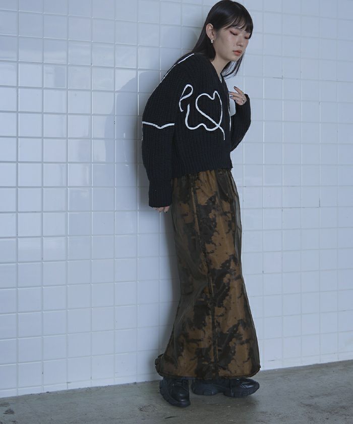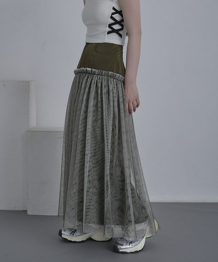 透かし編みニットレイヤードスカート〔メール便可/60〕