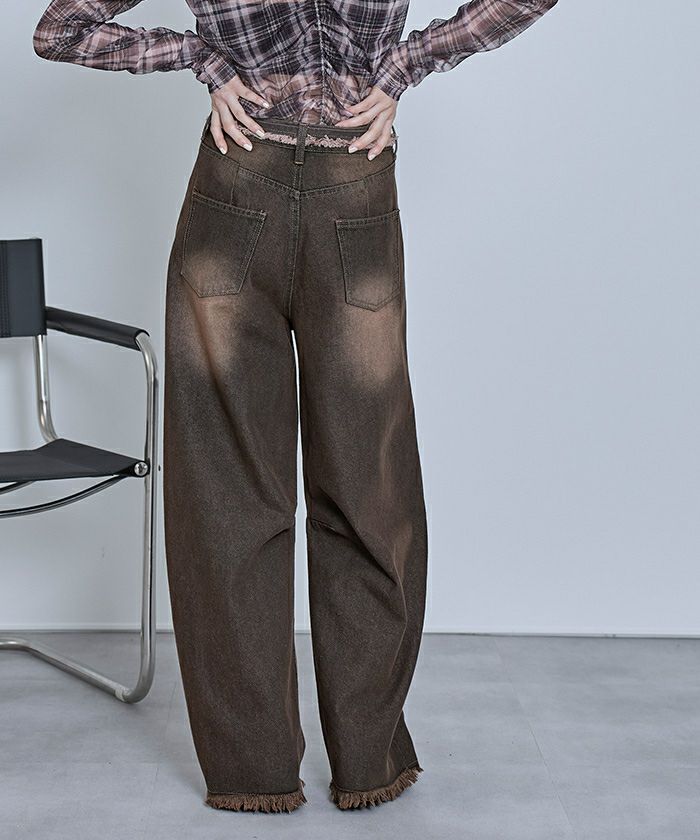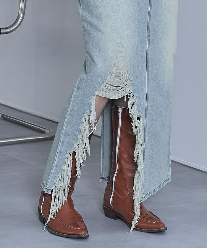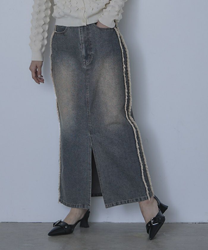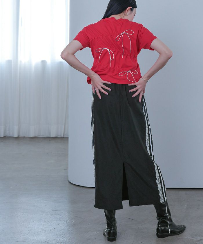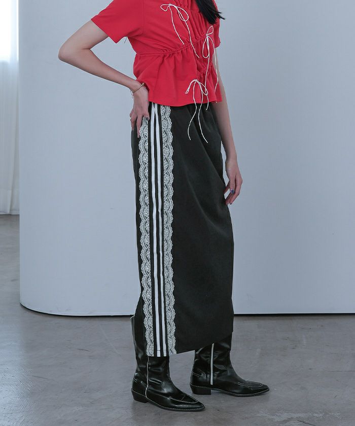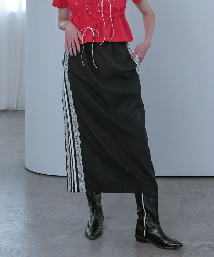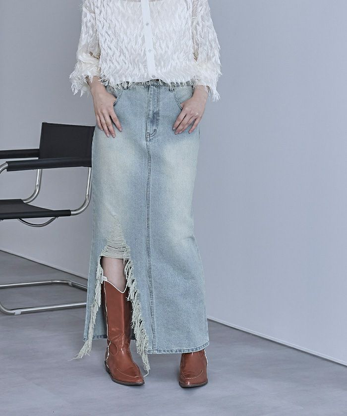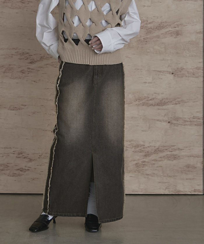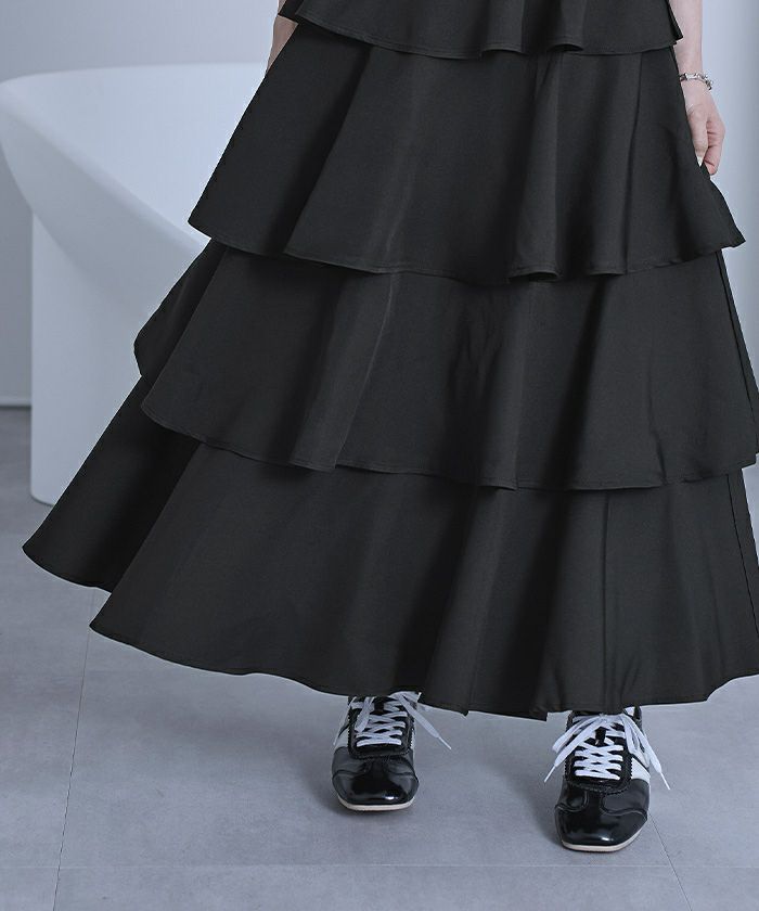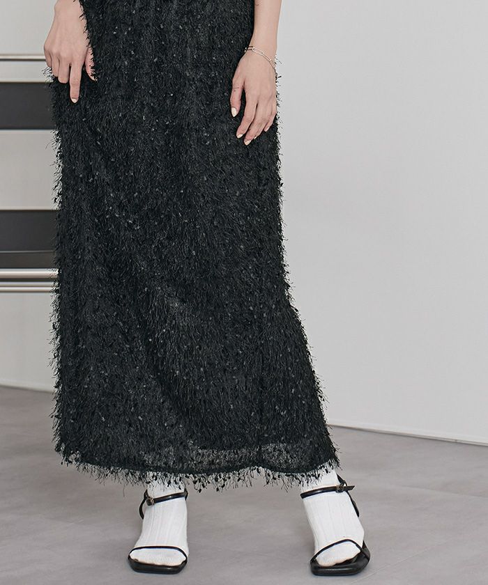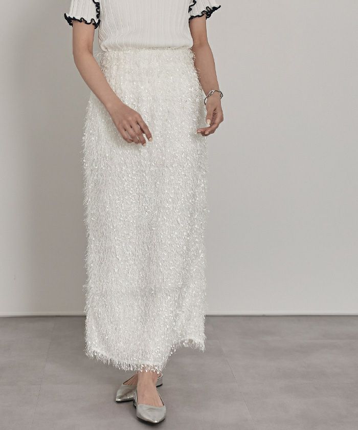 透かし編みニットレイヤードスカート〔メール便可/60〕