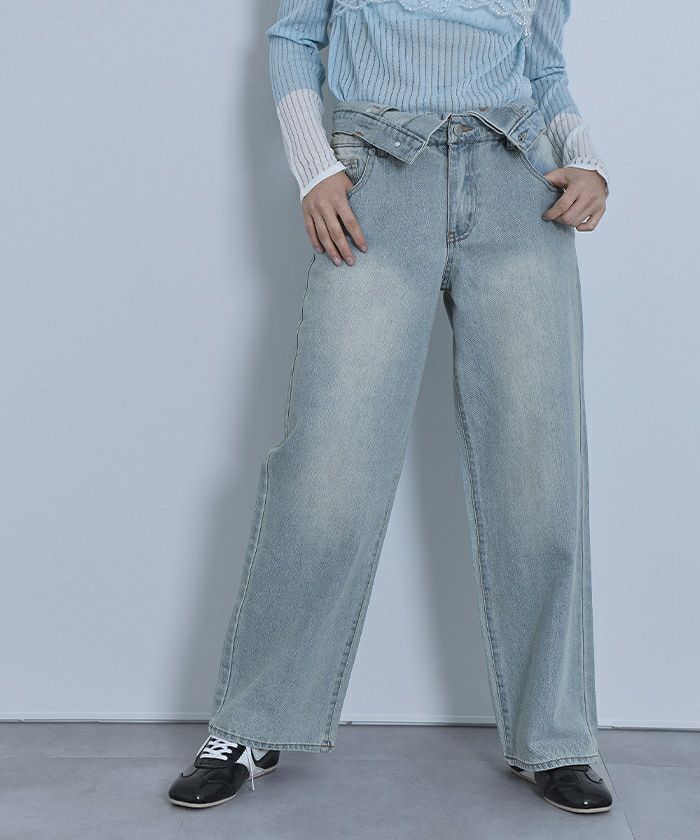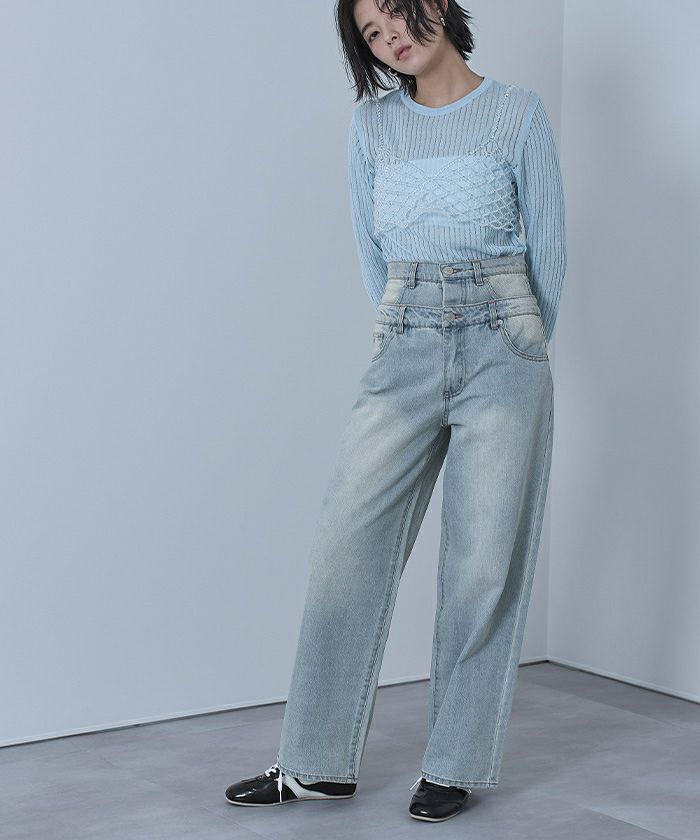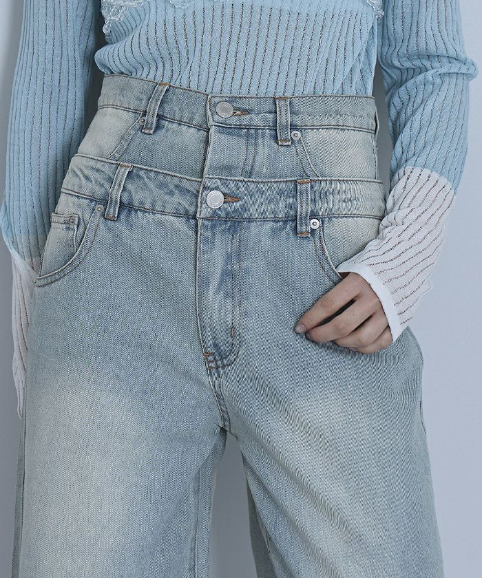 ・デニムパンツを2枚履いているかのようなレイヤードスタイルが新鮮なデニムパンツ