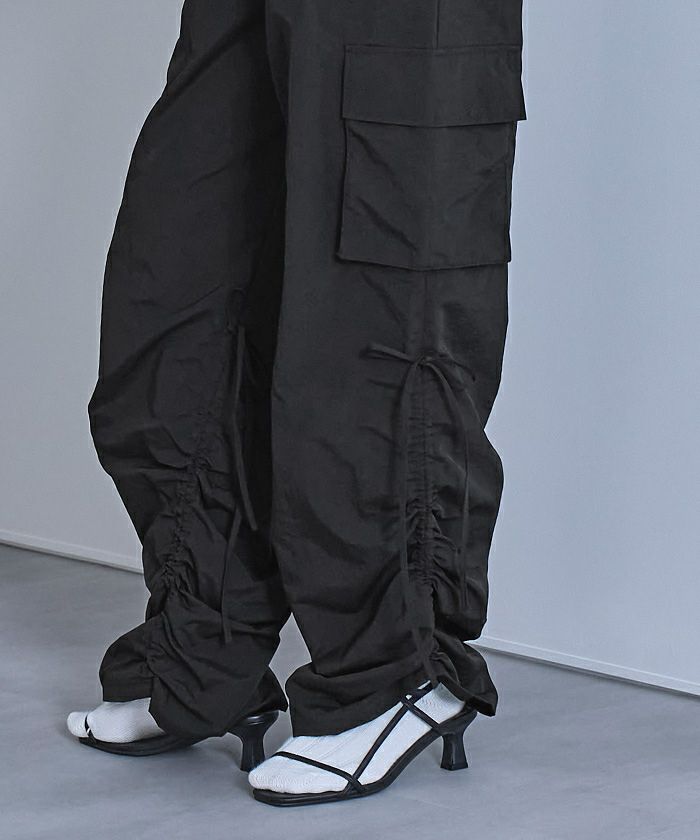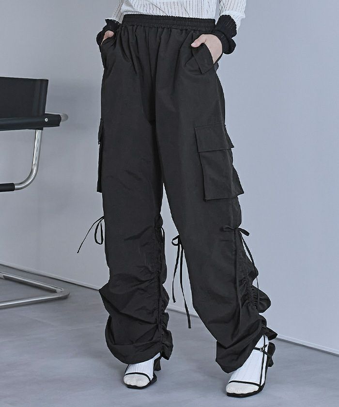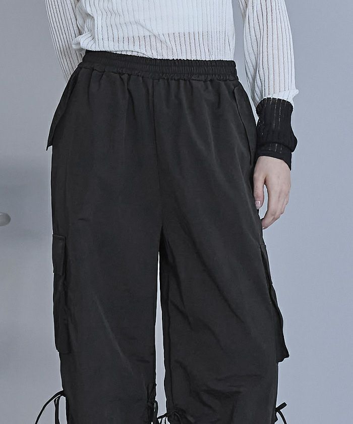 ・裾のドローストリングの絞り具合で股下の調節可能