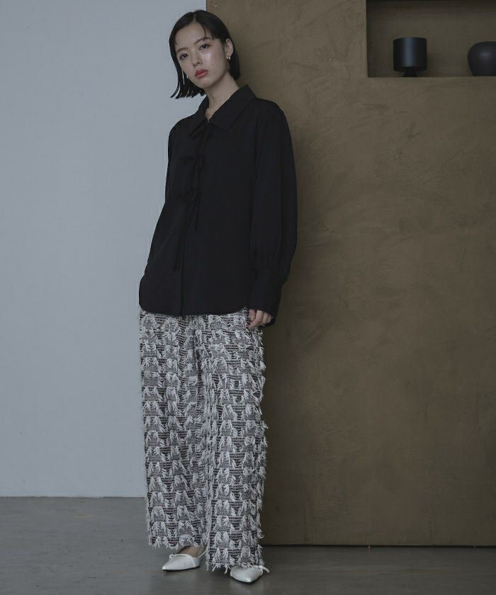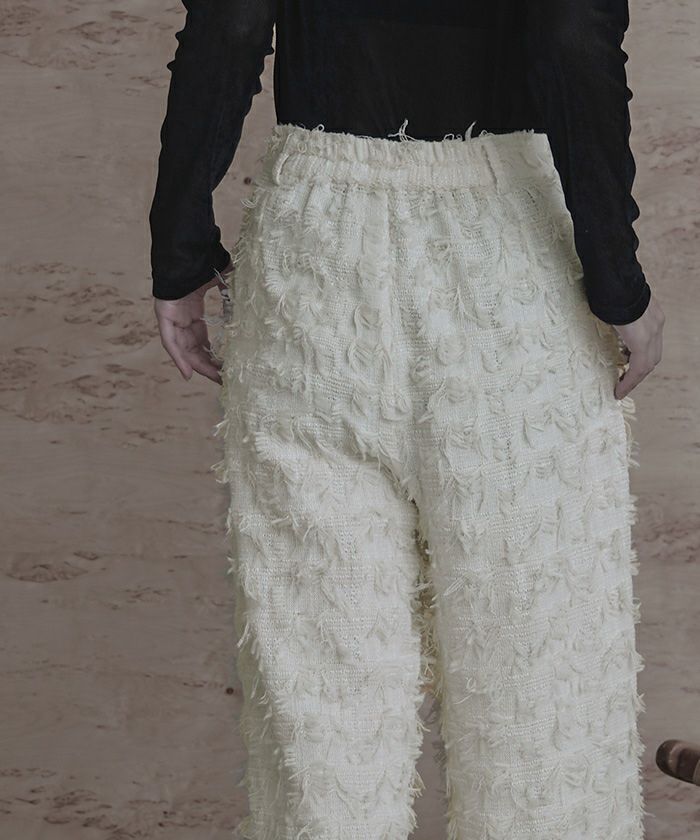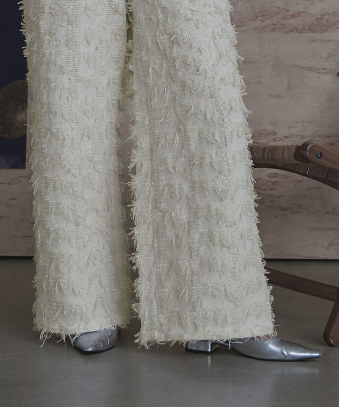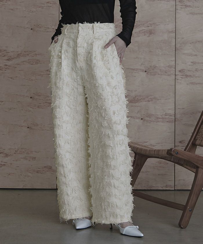 ・フリンジツイード素材の存在感のあるワイドパンツ