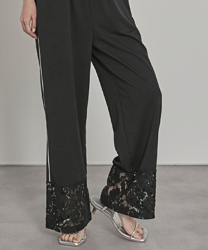 ・スポーティなトラックパンツにレース切替を入れ、女性らしさをプラスしたデザイン