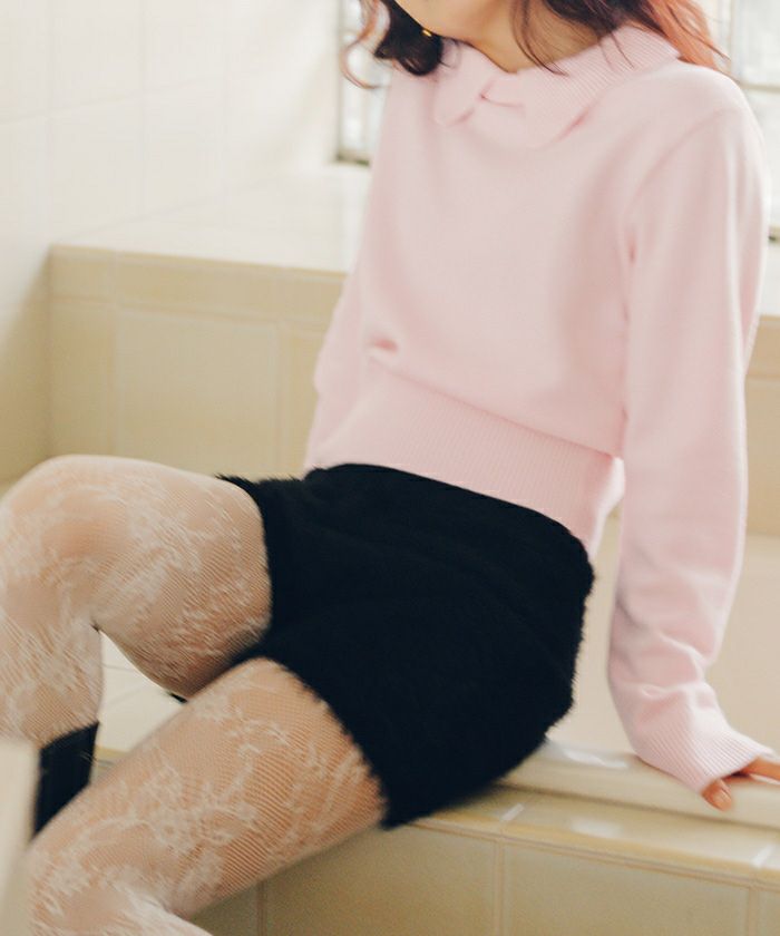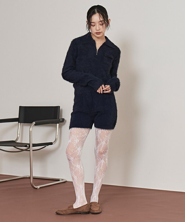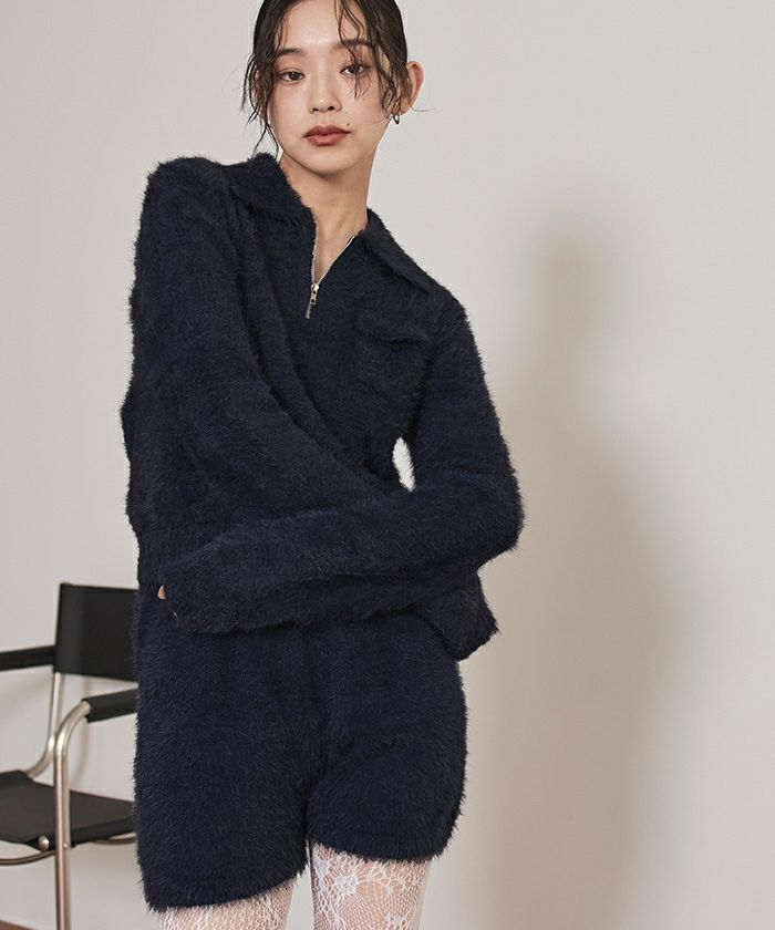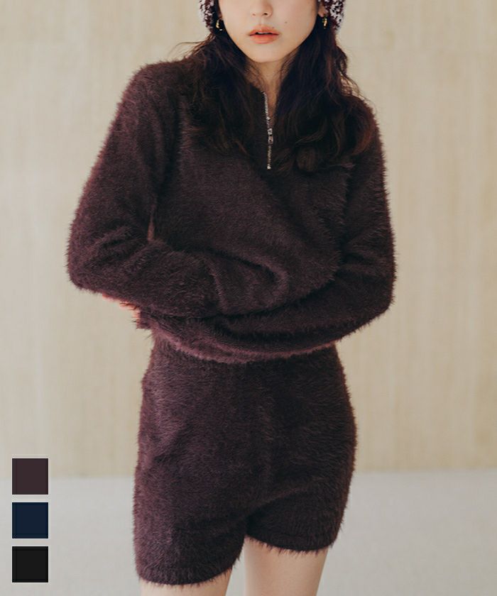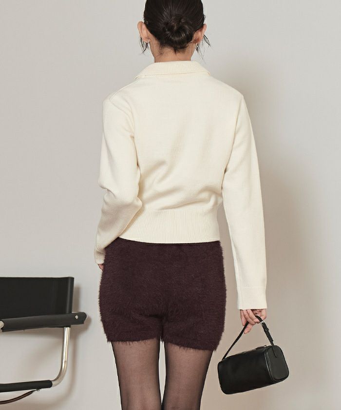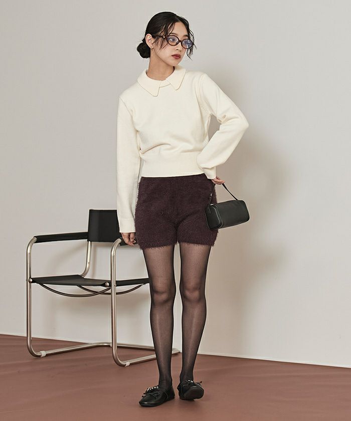 ・コンパクトなシルエットが華奢見えするシャギーニットショートパンツ