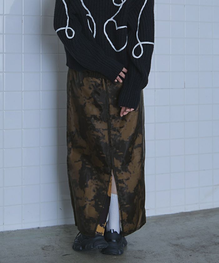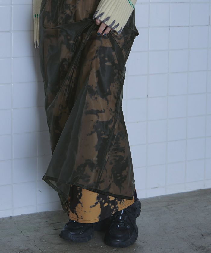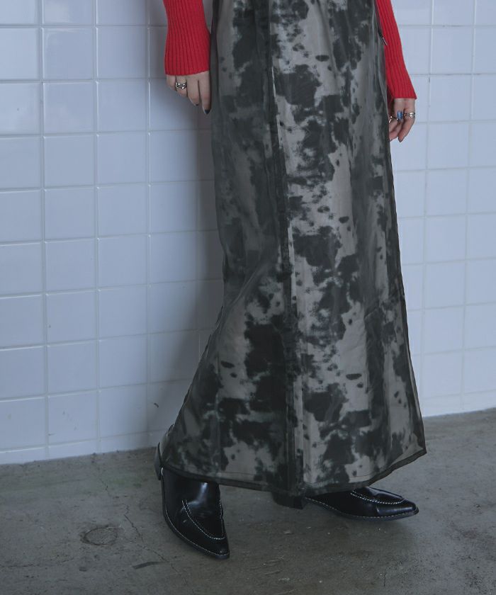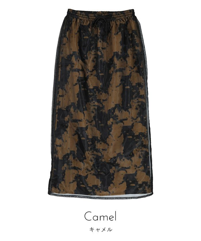 ・大胆なムラプリントの上にオーガンジーを重ねたスカート