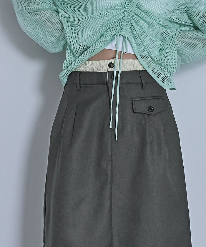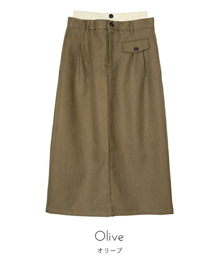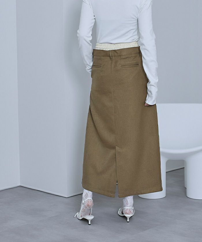・レイヤード風のダブルウエストがトレンド感たっぷりのロングスカート